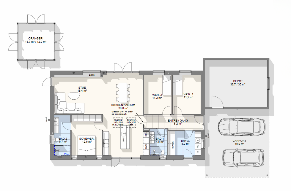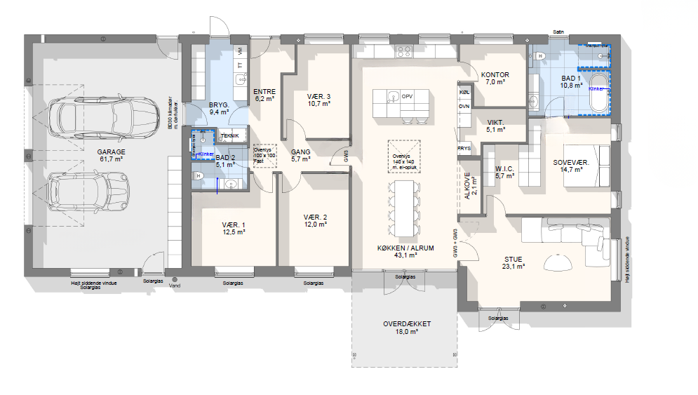 Garage, Terrasse, Viktualierum, Walk-in closet