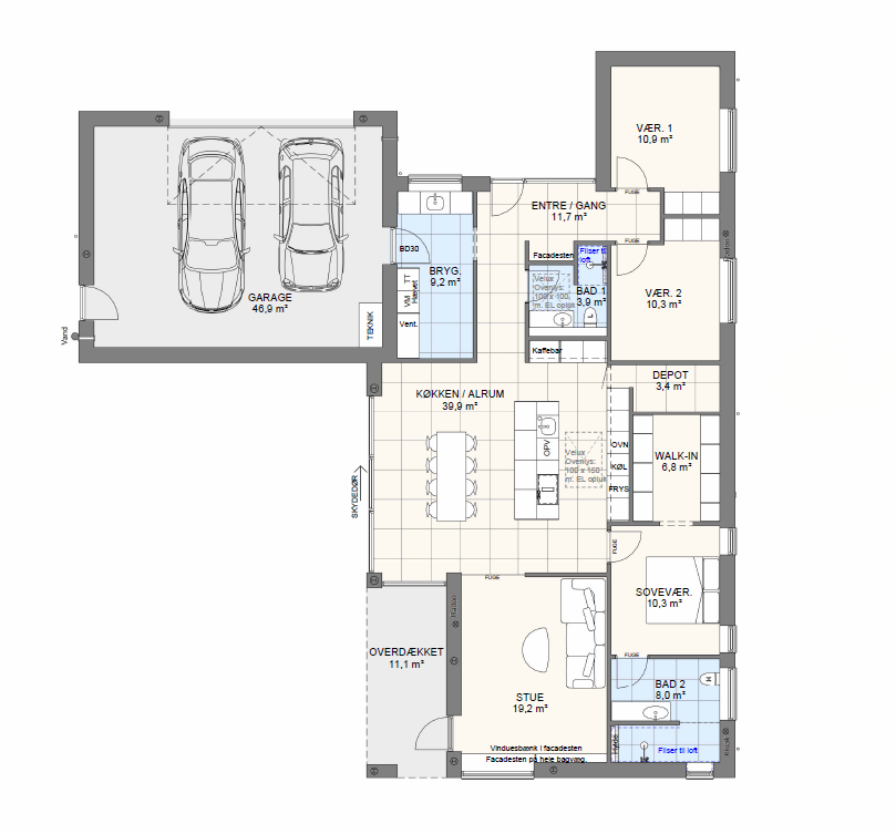 Sammen med vores byggerådgivere kan du tilpasse plantegninger og materialevalg, så både arkitektur og funktion passer til jeres hverdag og grund.