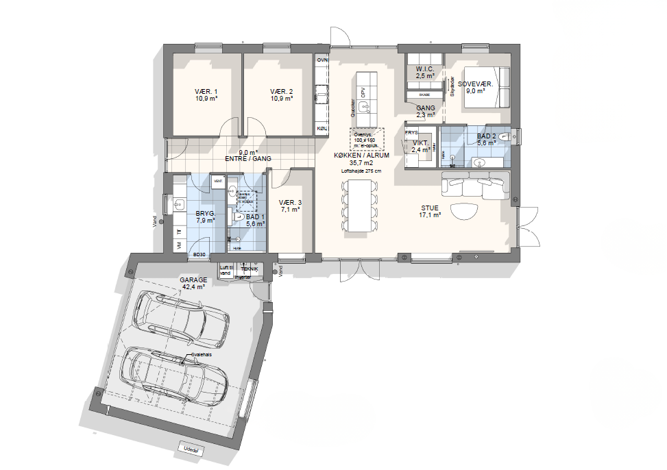 K2 Value Concept er vores prisstærke boligkoncept med fokus på funktionalitet, moderne arkitektur og økonomisk tryghed. Du vælger mellem fem husstørrelser – fra 130 til 170 m² – og får en fast plantegning, der er optimeret ned til mindste detalje.