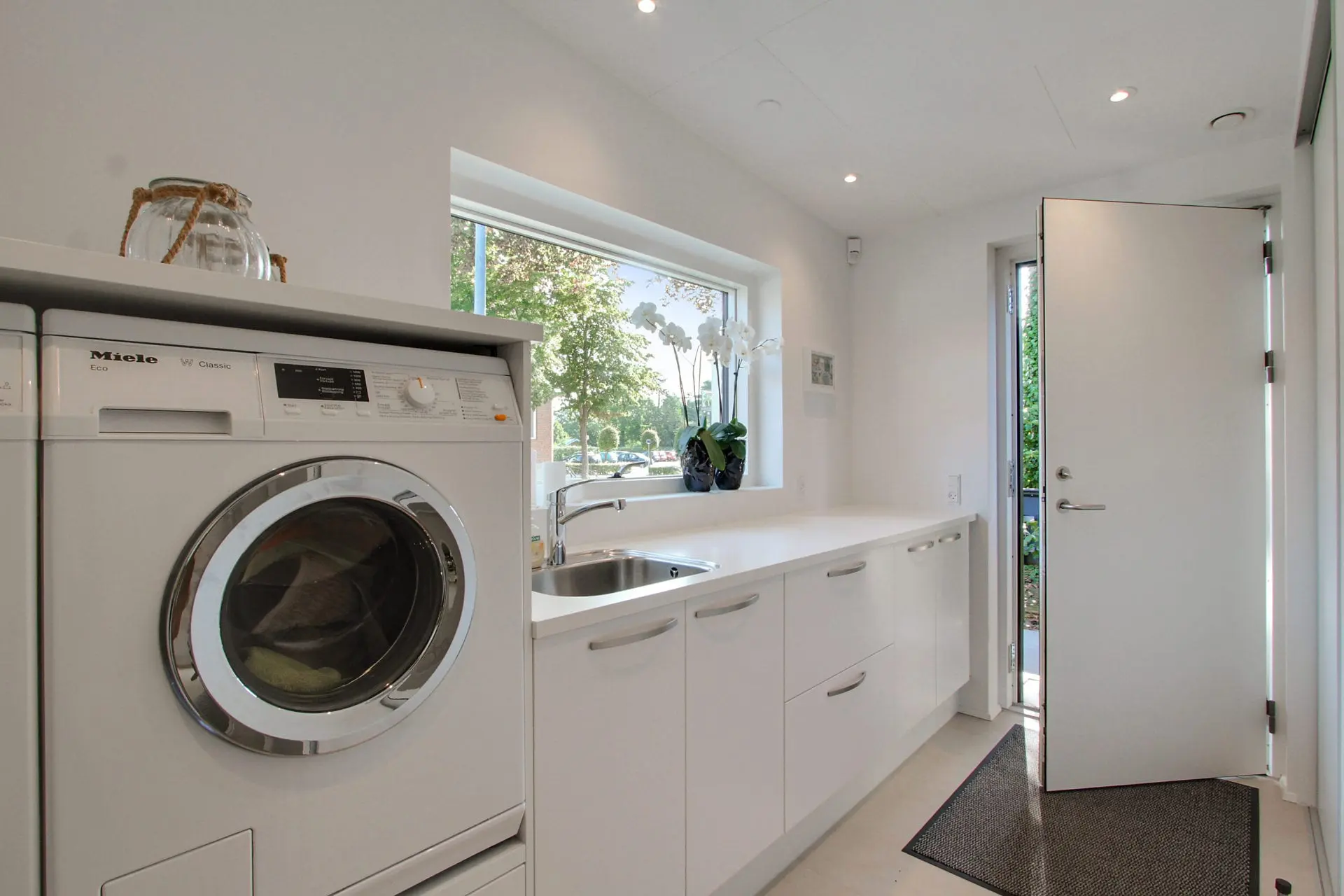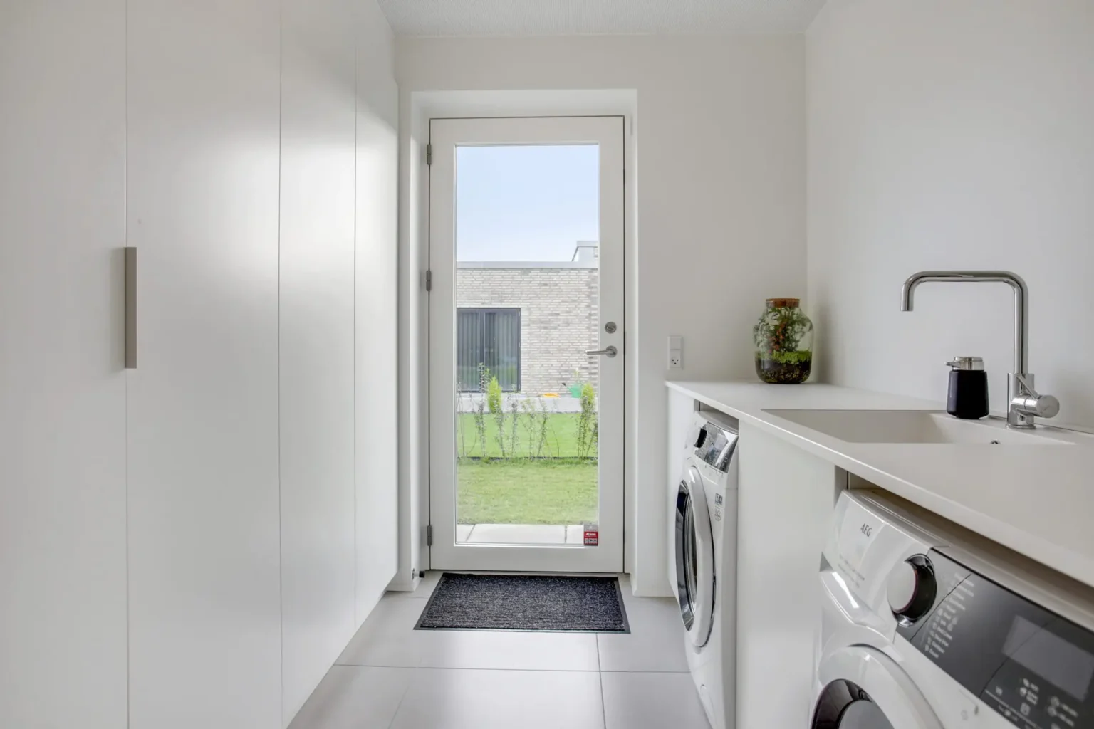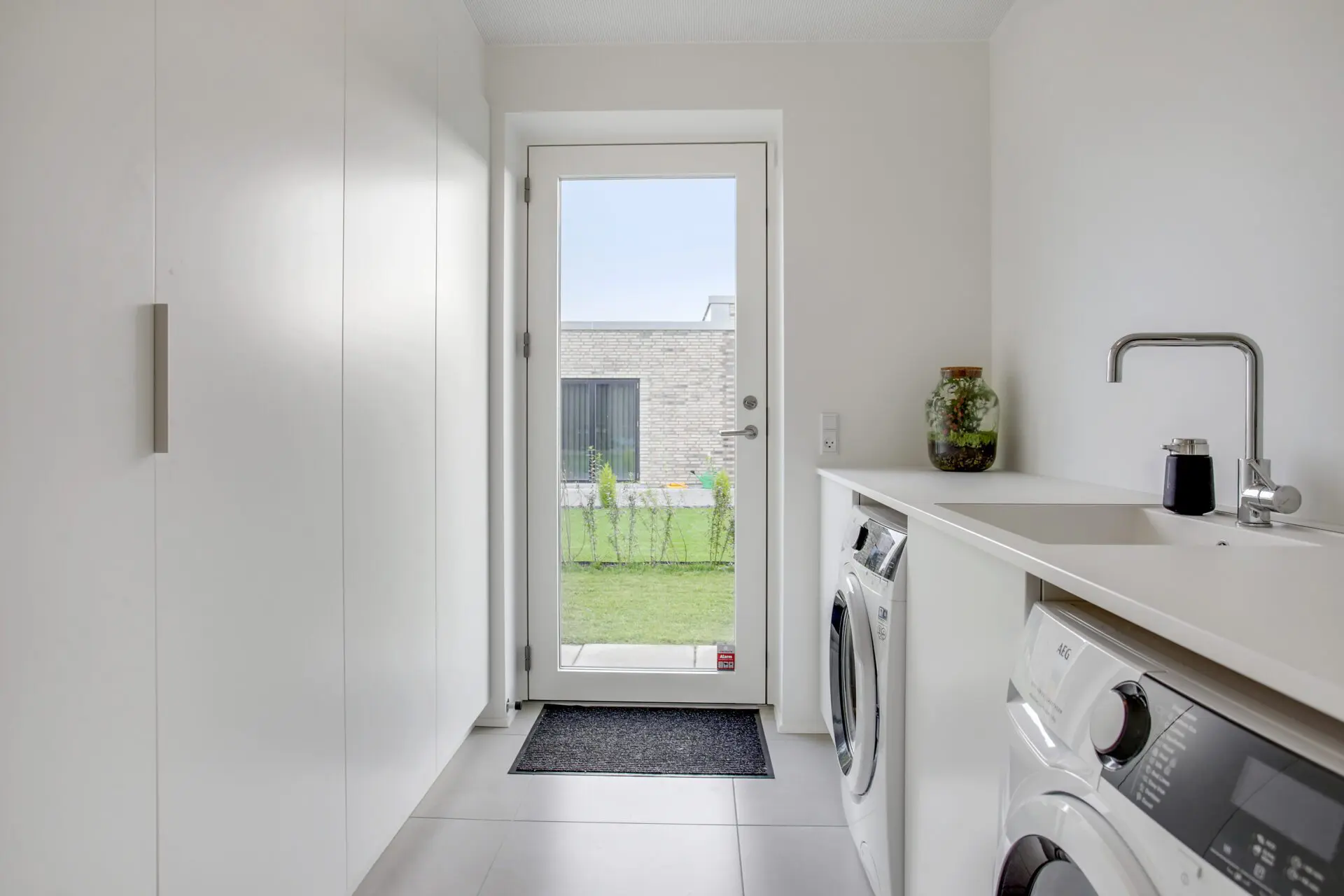 Mange af vores huse har direkte adgang til bryggers fra carport eller garage, så det bliver en praktisk hverdagsindgang.