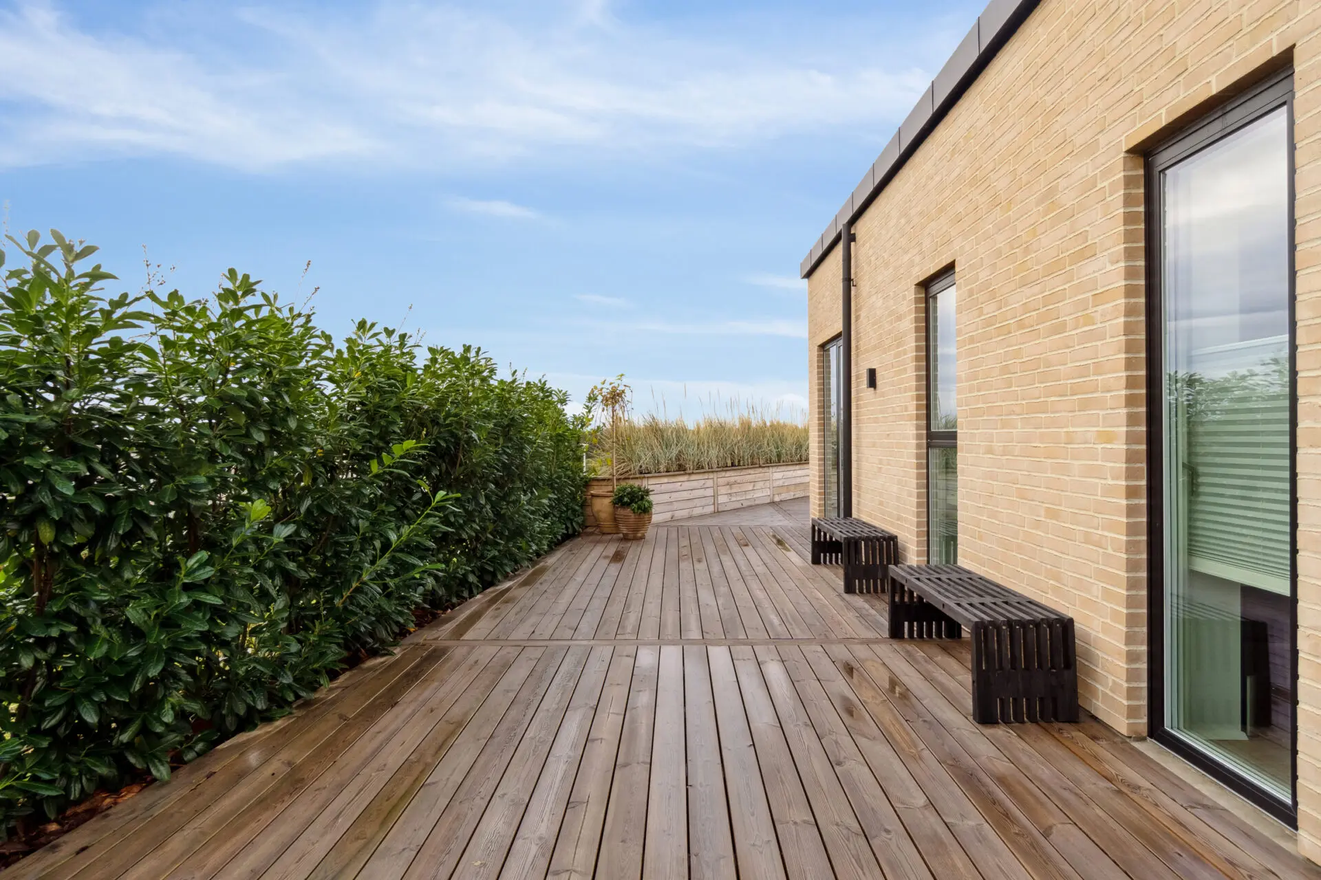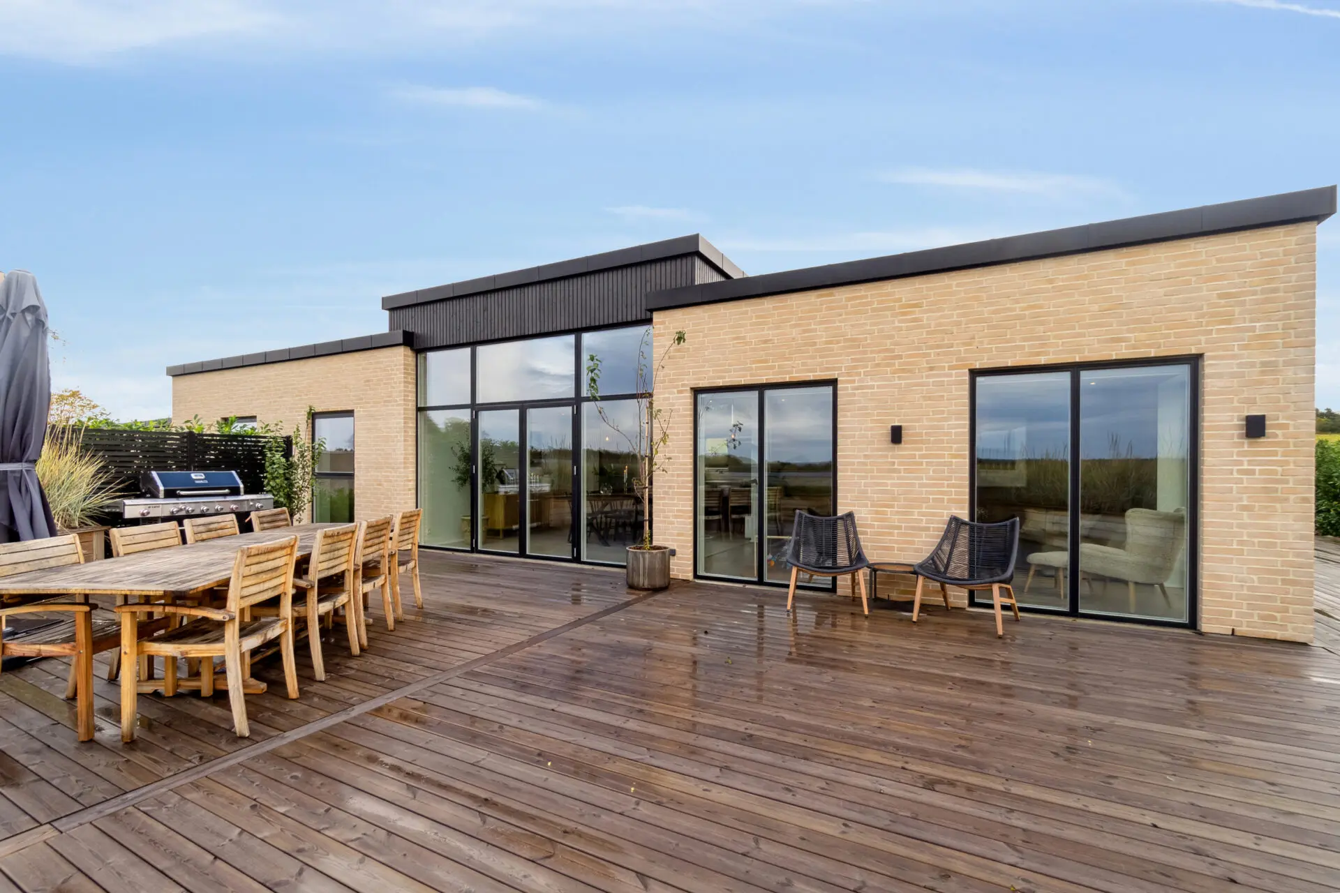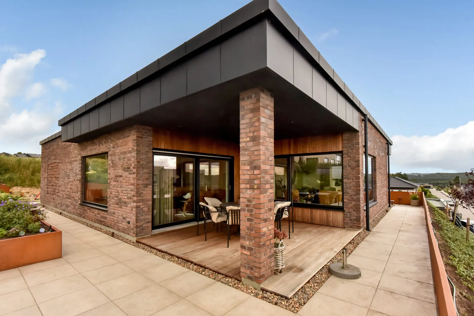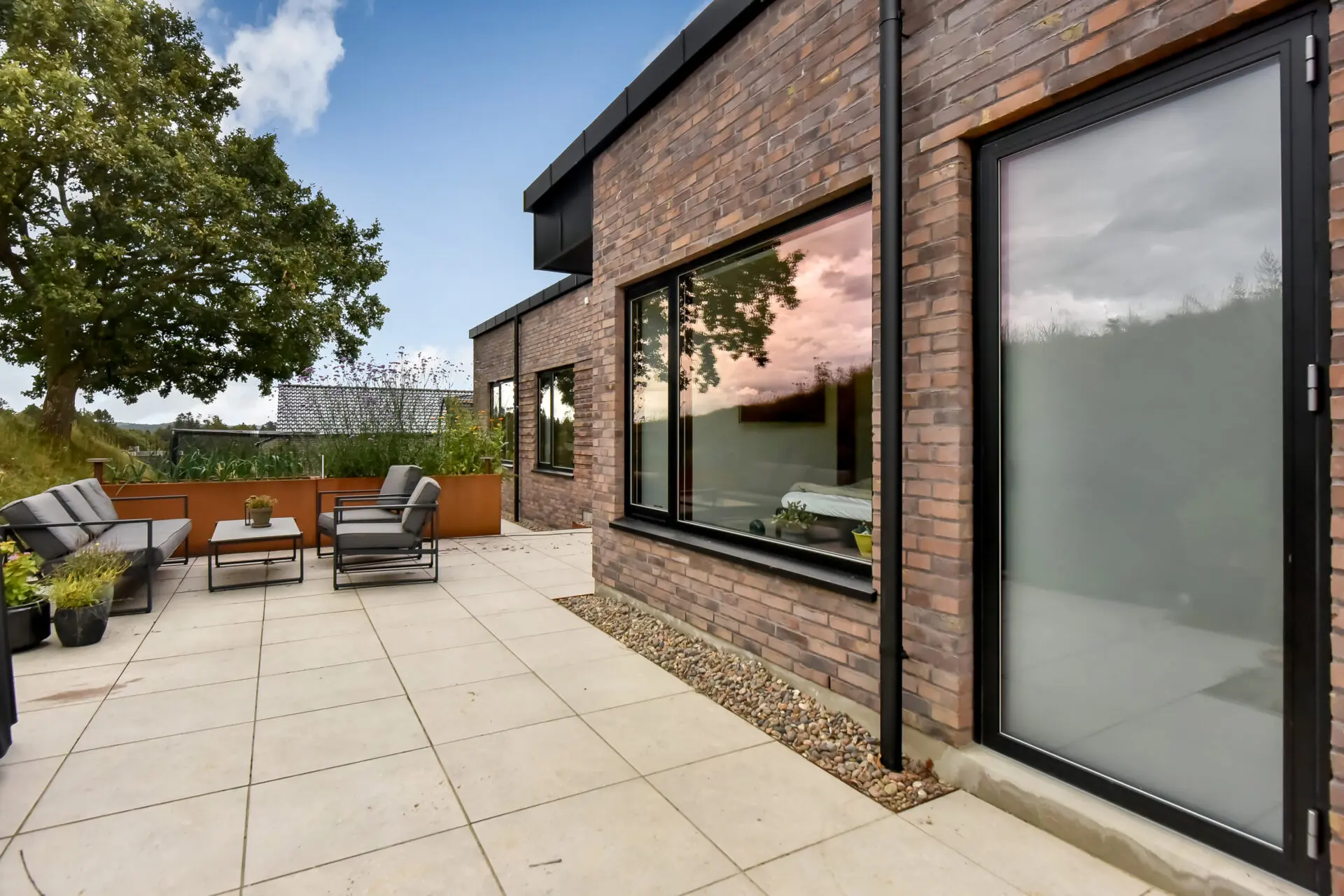 Glatte mursten, mørke farver, trædetaljer og aluminiumsvinduer er populære valg, der understøtter den moderne æstetik.