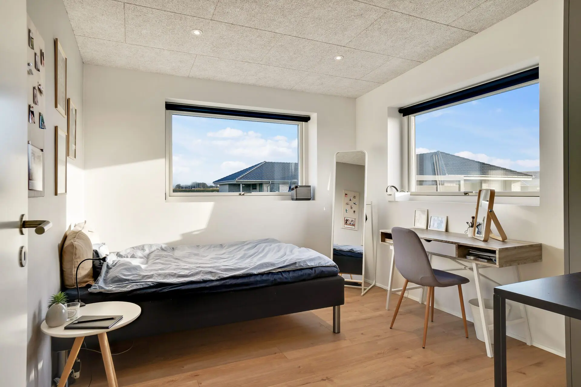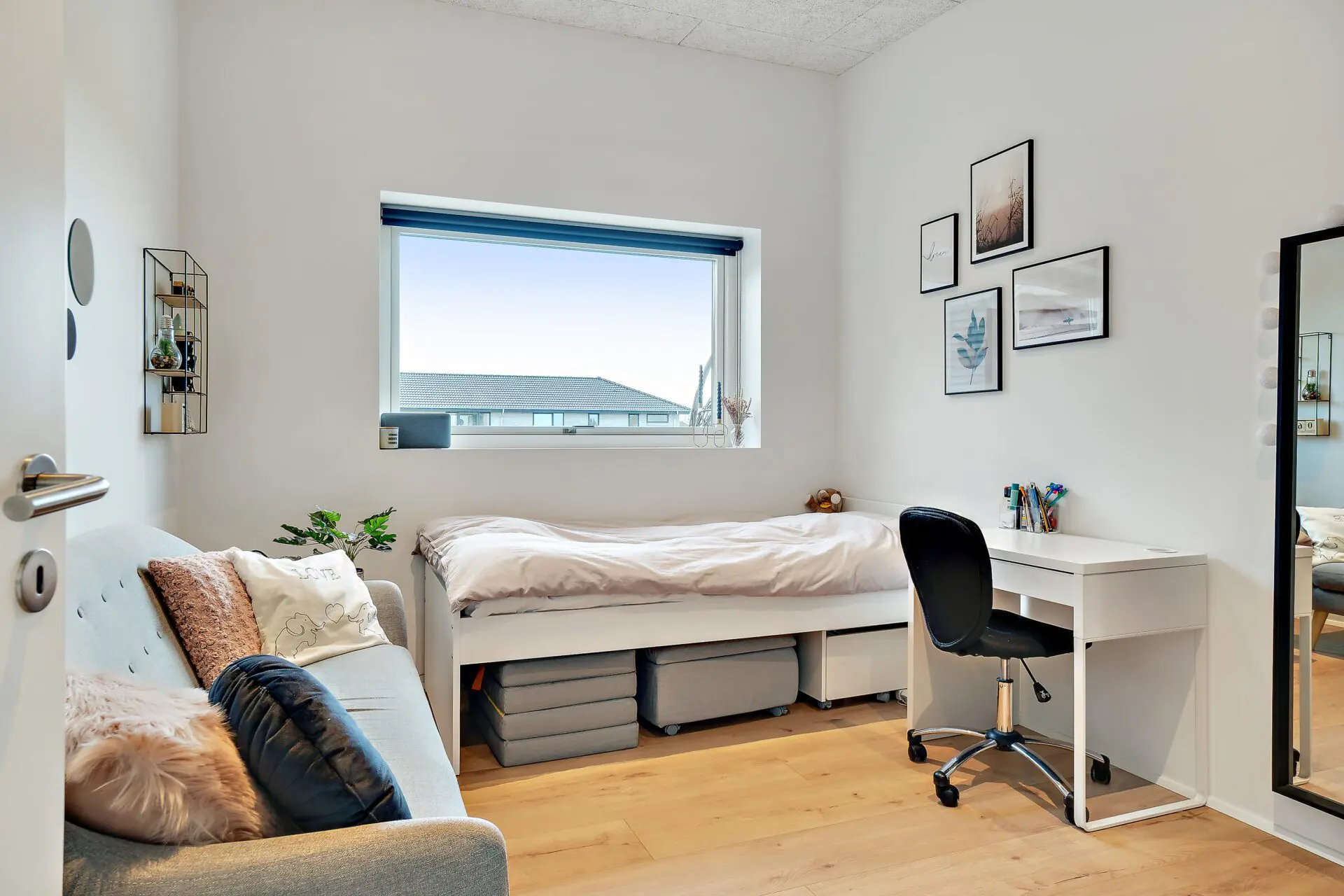Et godt værelse kræver mere end bare fire vægge. Det handler om lys, placering, støjniveau og mulighed for opbevaring. I vores plantegninger er værelserne typisk samlet i separate børne- eller ungdomsafdelinger med eget bad og gang – så der er ro og privatliv for både børn og voksne. Vi sørger for, at værelserne har gode proportioner, naturligt lysindfald og mulighed for at indrette med både seng, skrivebord og skabe – og du kan tilpasse antal og placering, så det passer til jeres livsfase.