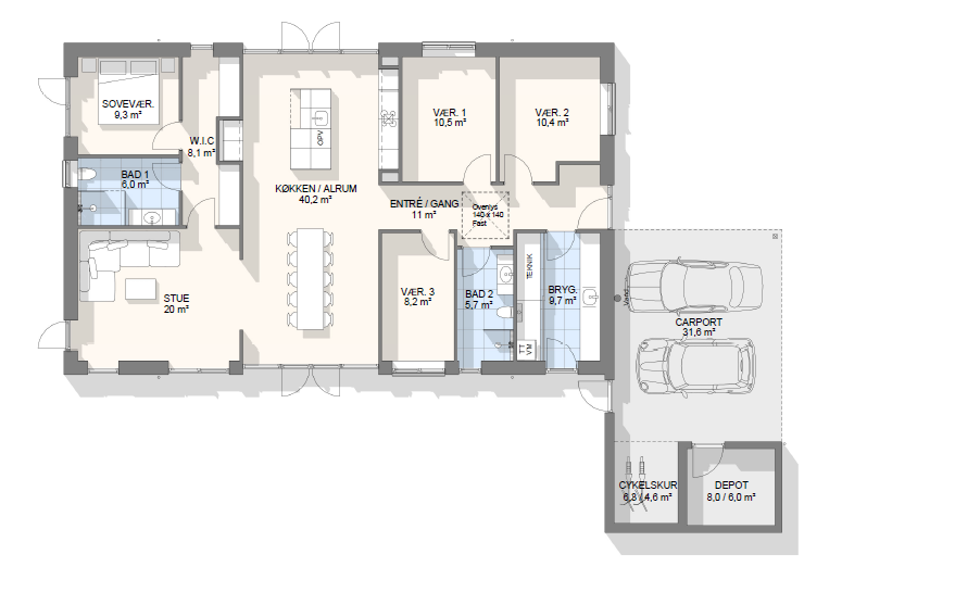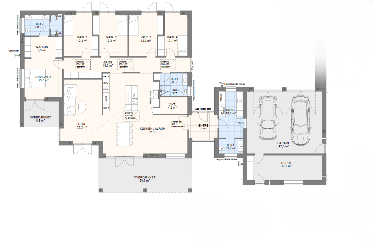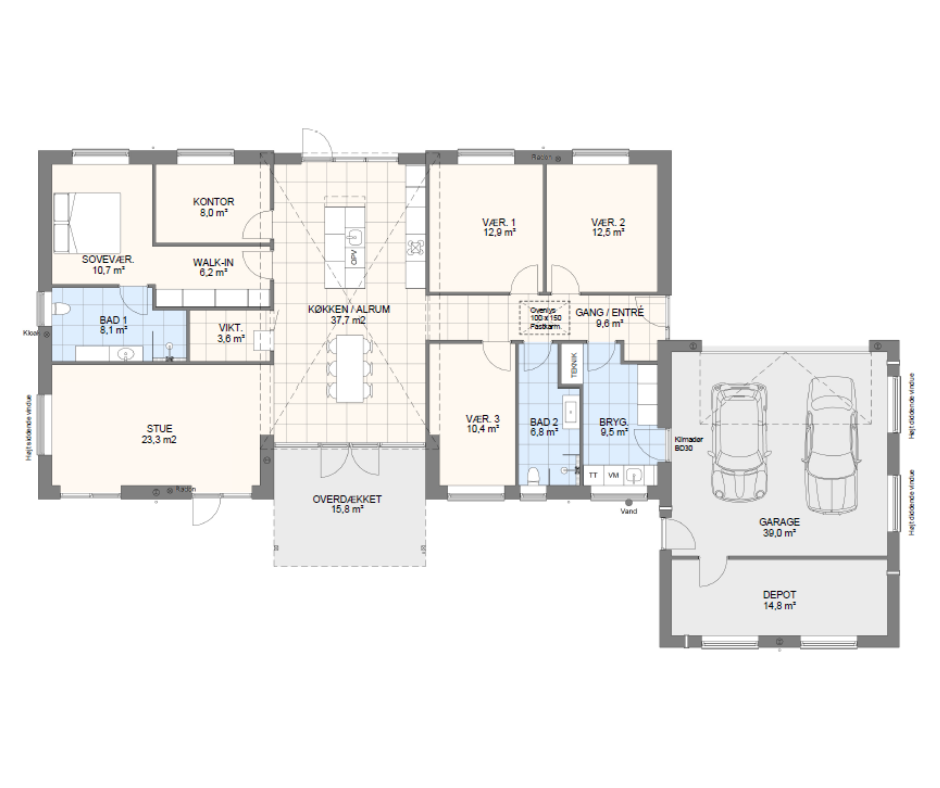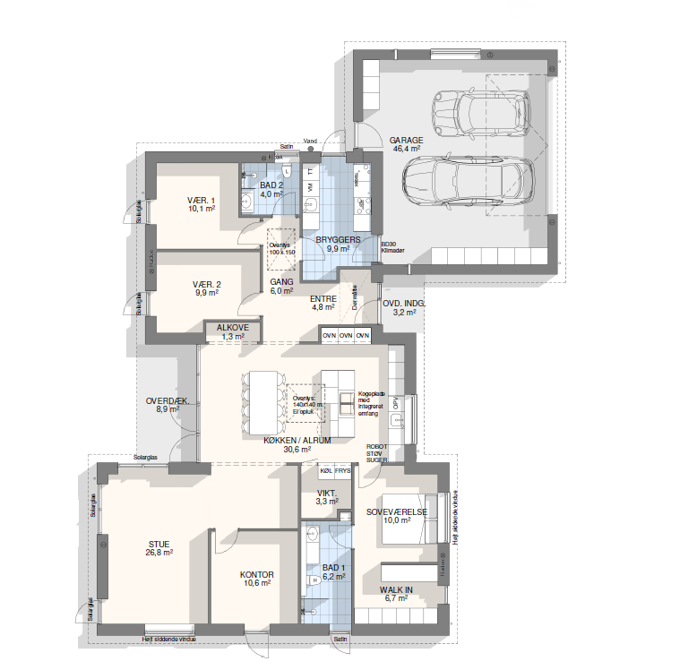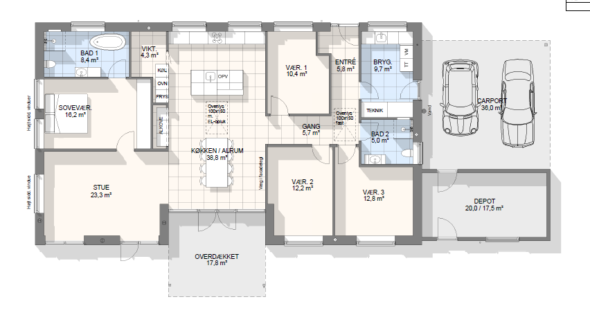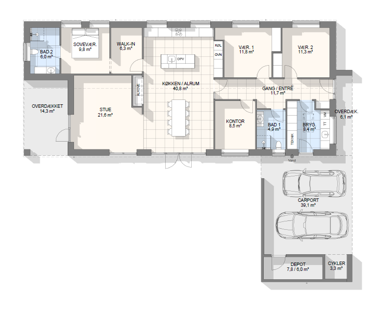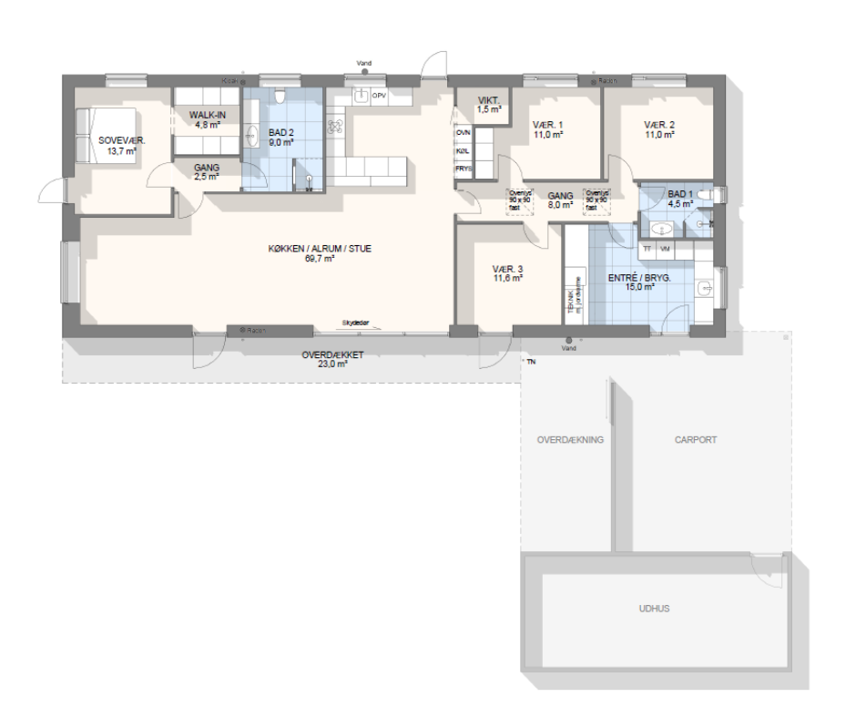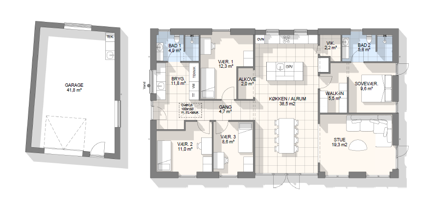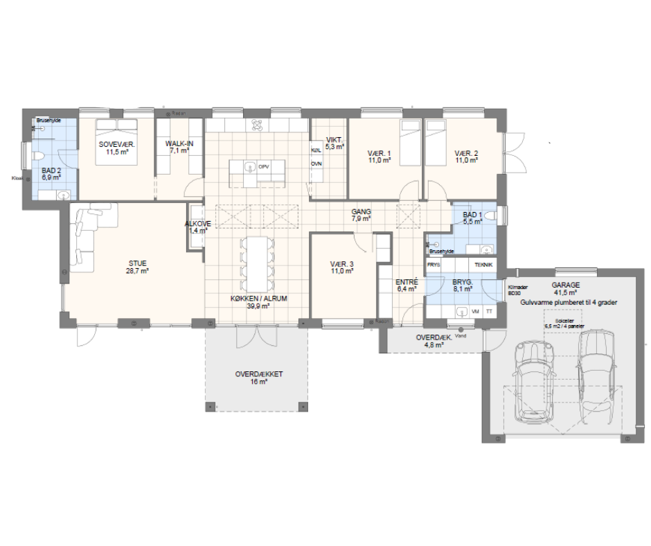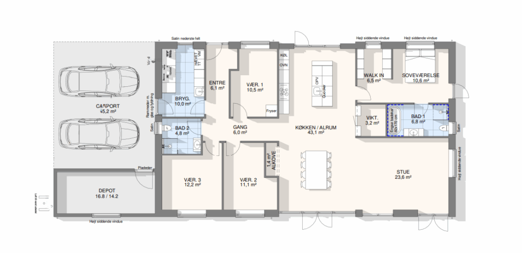 Vi har tegnet hundredevis af gennemtænkte planløsninger, der matcher forskellige familier, livsstile og drømme. Brug filtrene herunder til at finde det hus, der passer til jeres behov – uanset om I leder efter walk-in, viktualierum, alkove, garage eller noget helt andet.