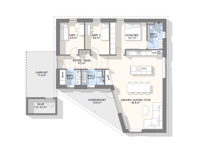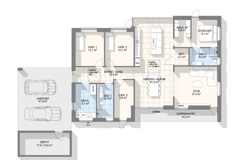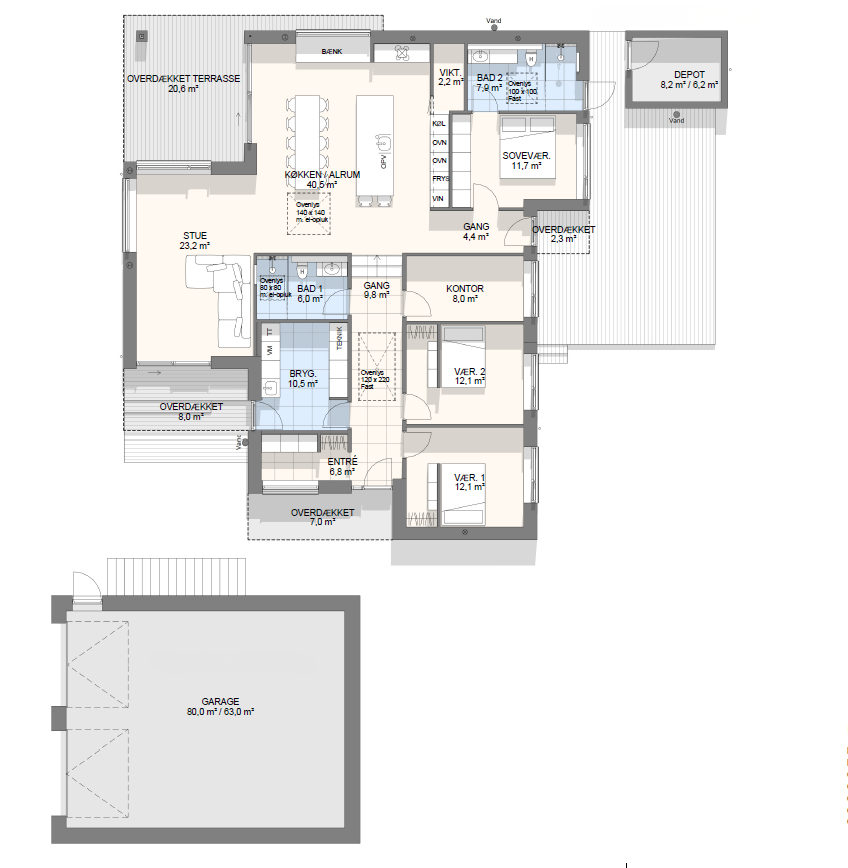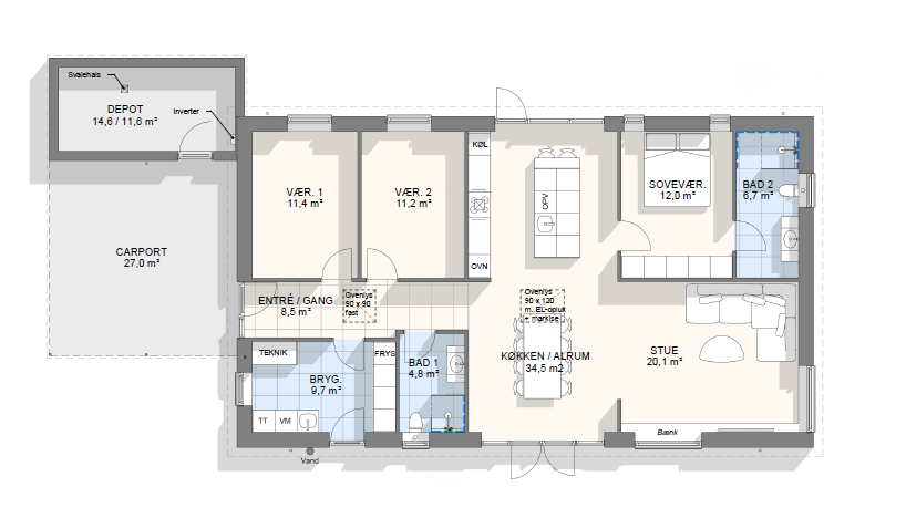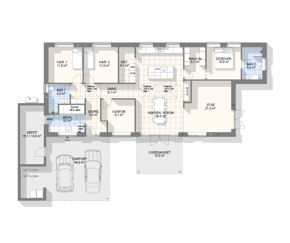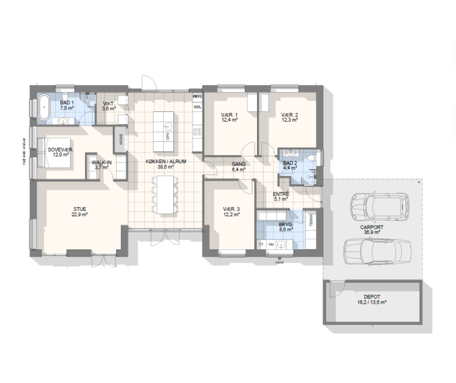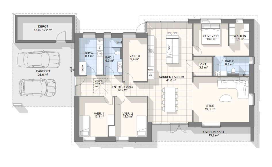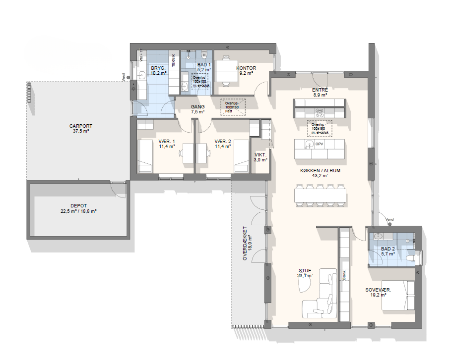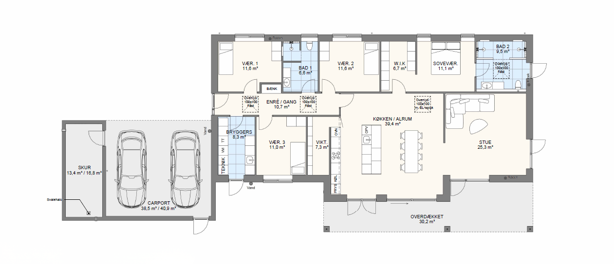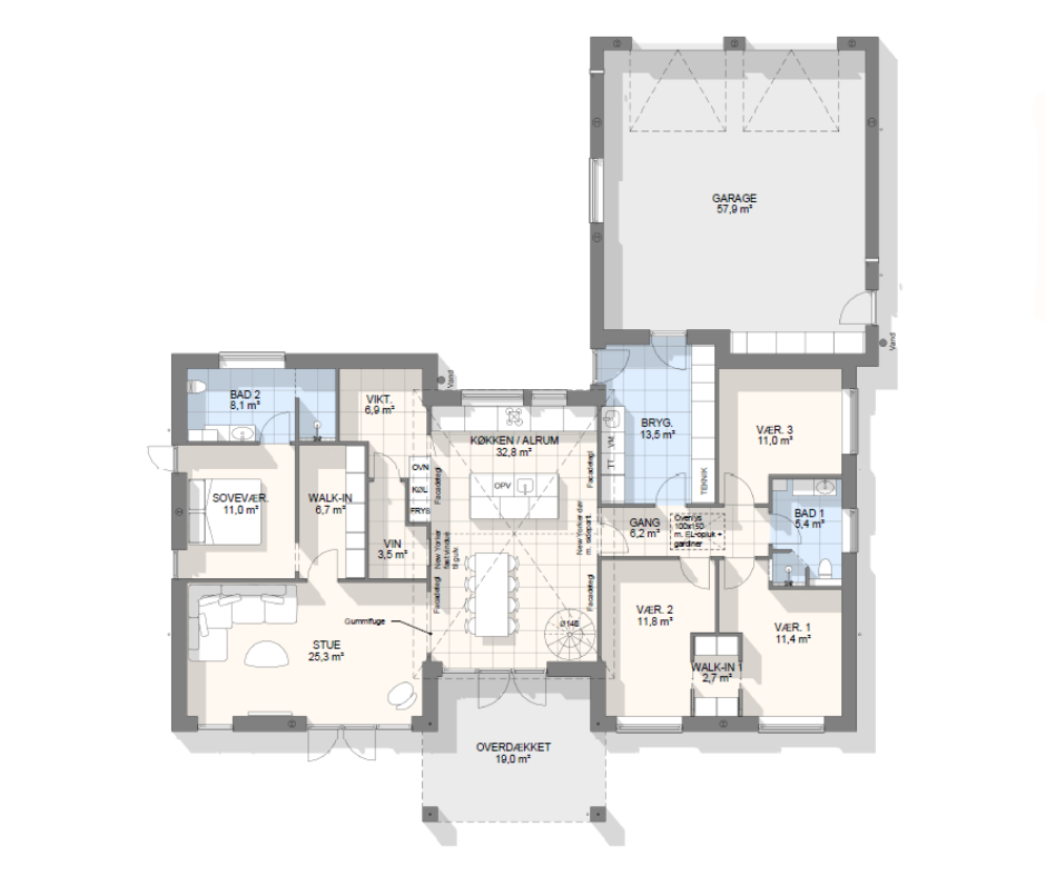 Vi har tegnet hundredevis af gennemtænkte planløsninger, der matcher forskellige familier, livsstile og drømme. Brug filtrene herunder til at finde det hus, der passer til jeres behov – uanset om I leder efter walk-in, viktualierum, alkove, garage eller noget helt andet.