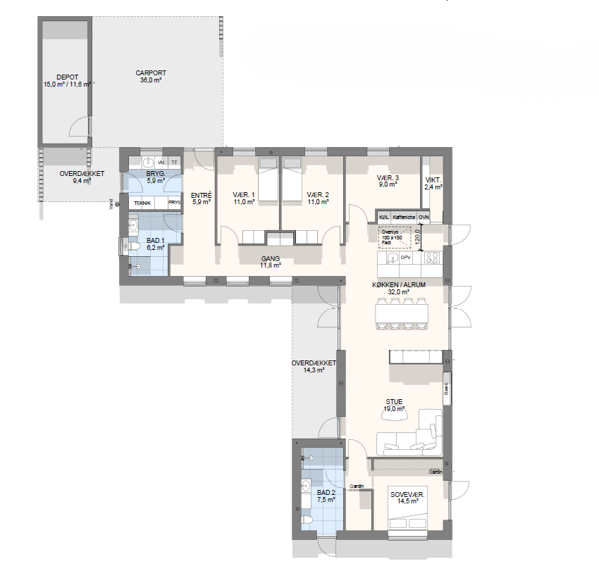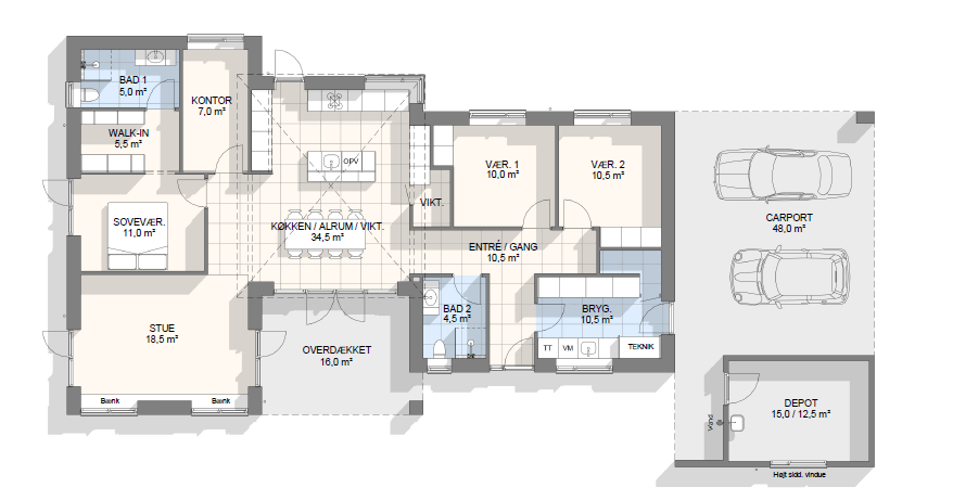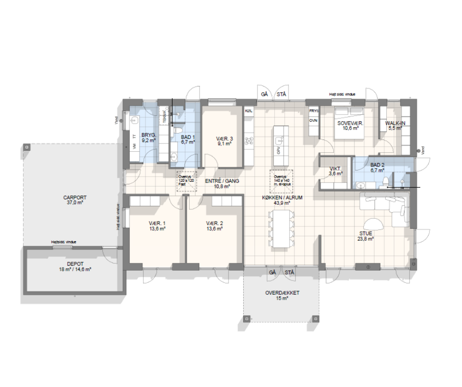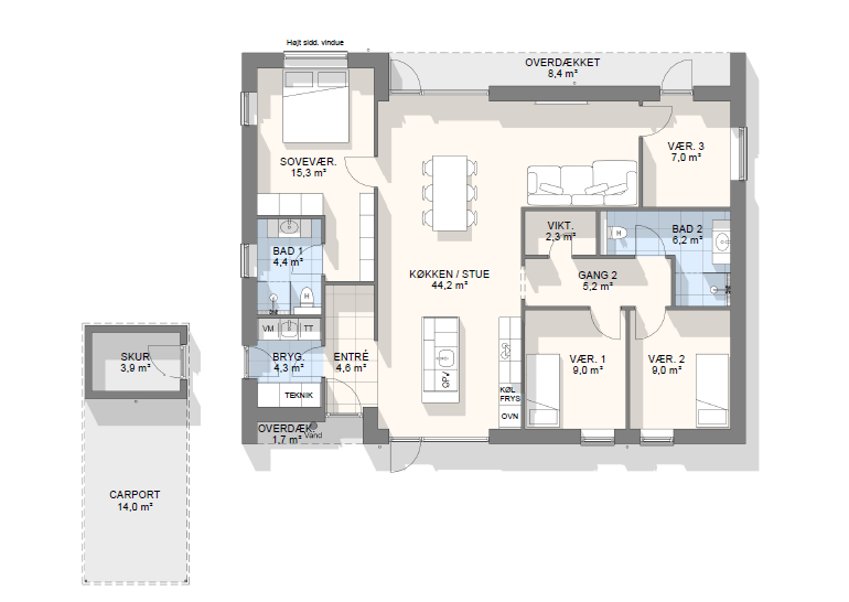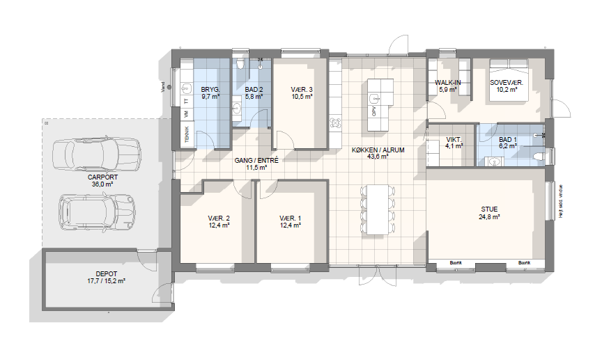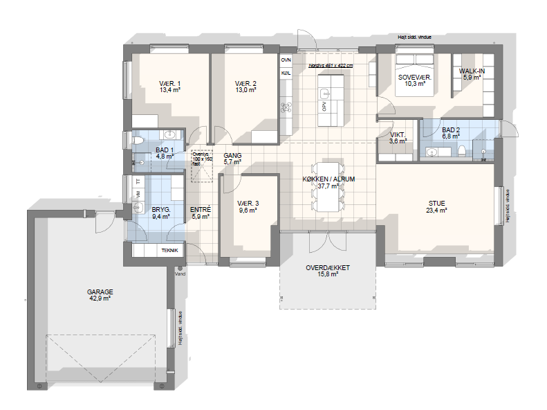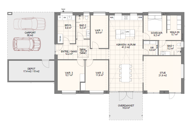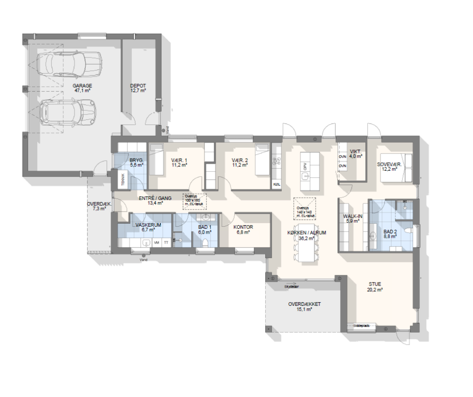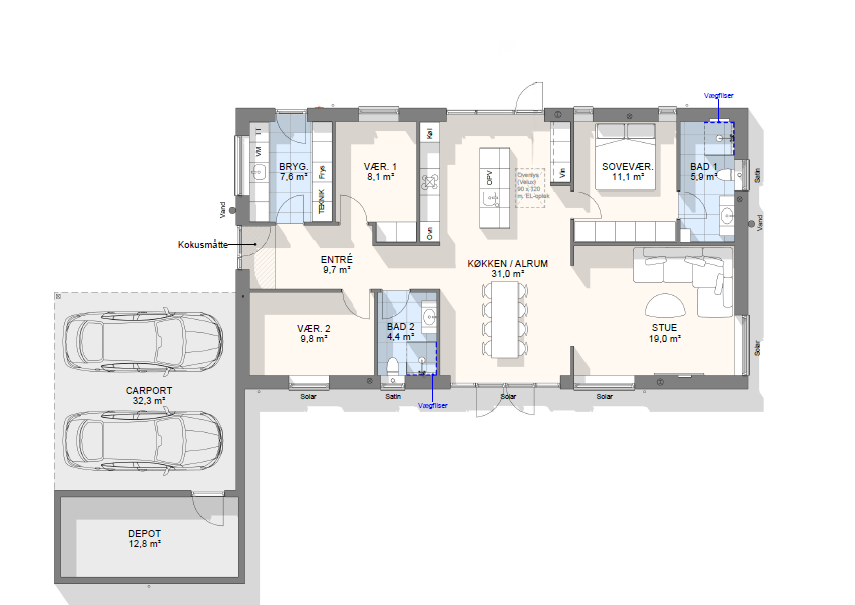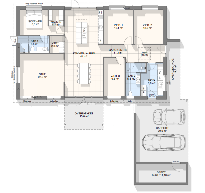 Vi har tegnet hundredevis af gennemtænkte planløsninger, der matcher forskellige familier, livsstile og drømme. Brug filtrene herunder til at finde det hus, der passer til jeres behov – uanset om I leder efter walk-in, viktualierum, alkove, garage eller noget helt andet.