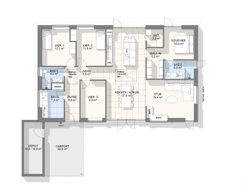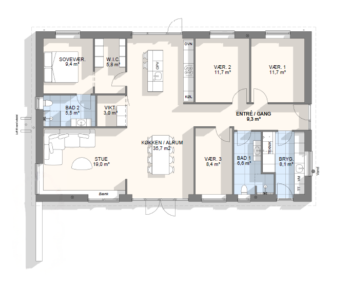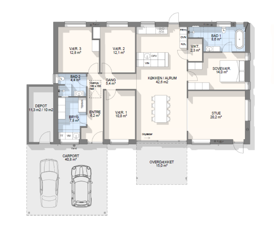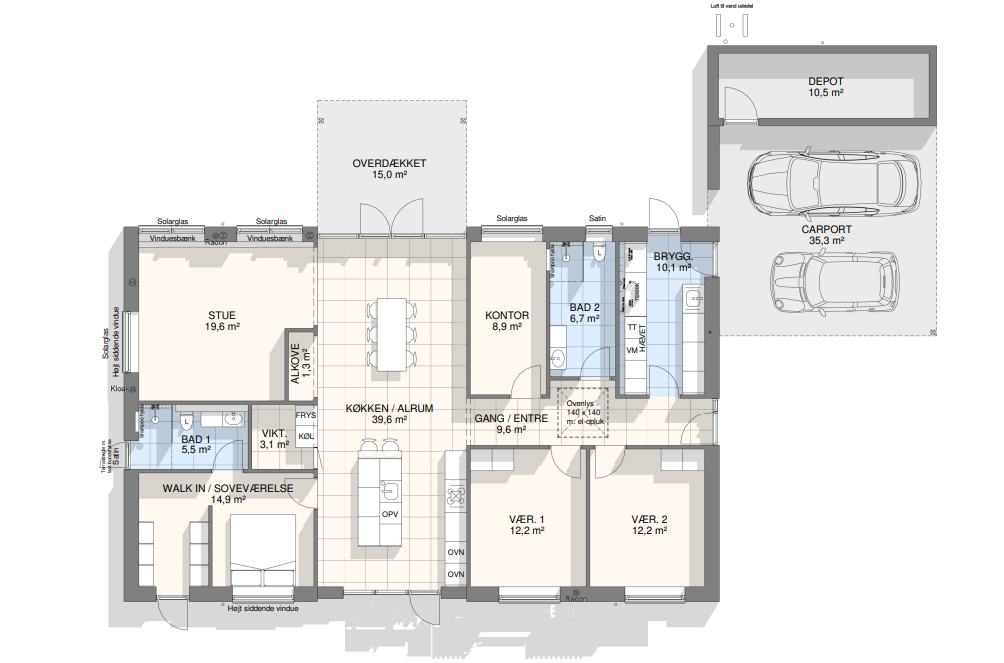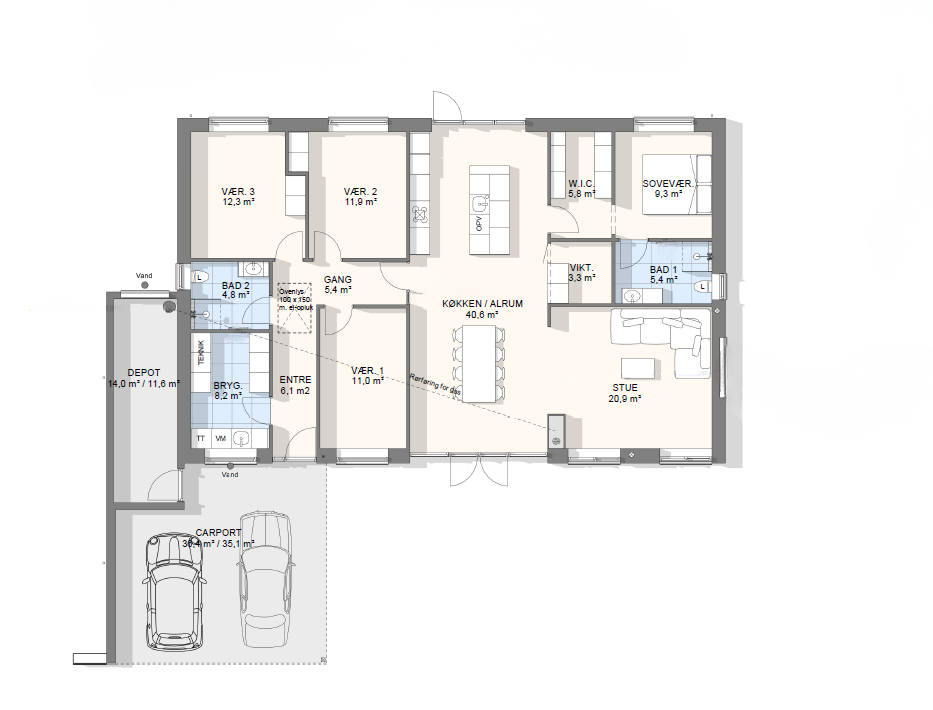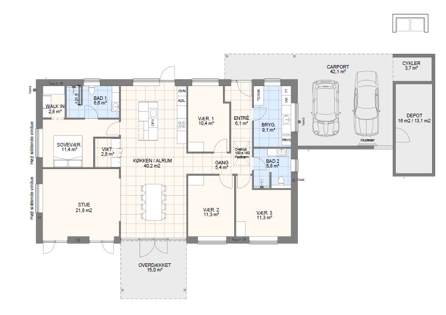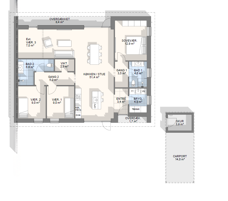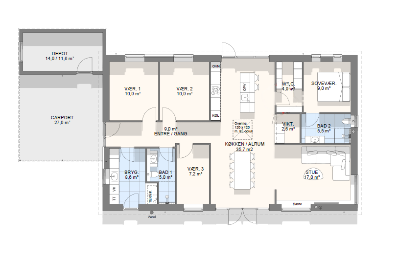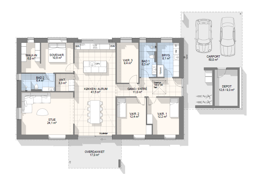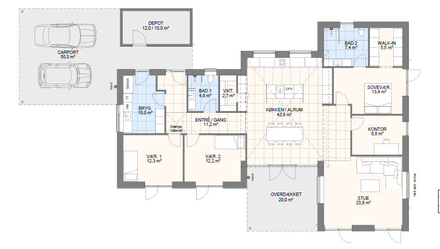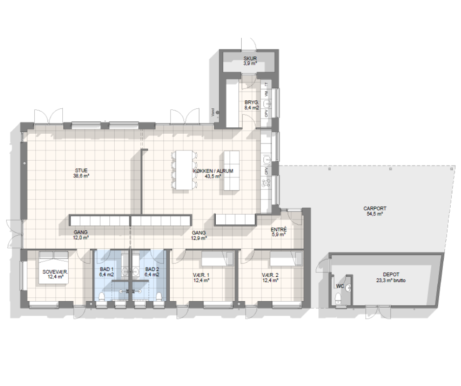 Vi har tegnet hundredevis af gennemtænkte planløsninger, der matcher forskellige familier, livsstile og drømme. Brug filtrene herunder til at finde det hus, der passer til jeres behov – uanset om I leder efter walk-in, viktualierum, alkove, garage eller noget helt andet.
