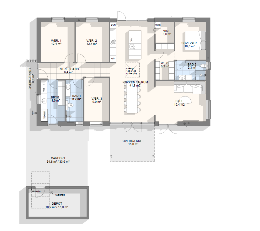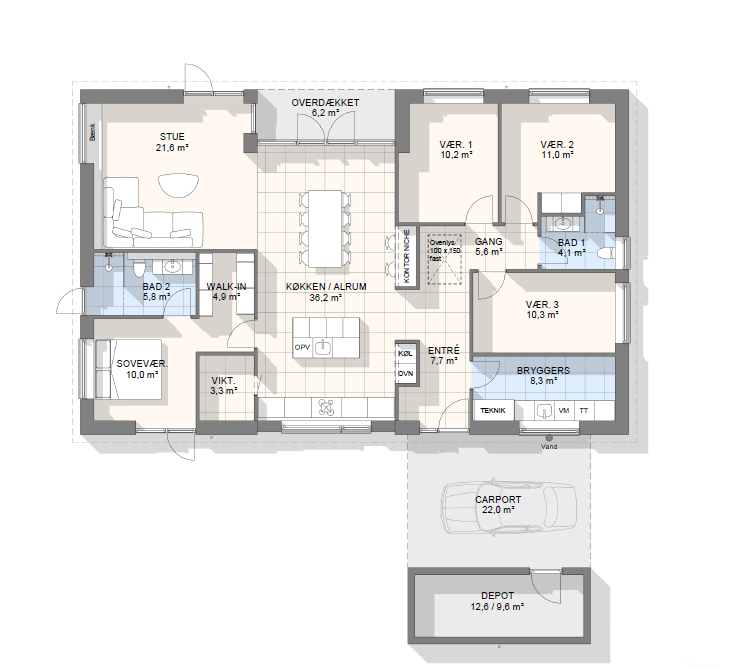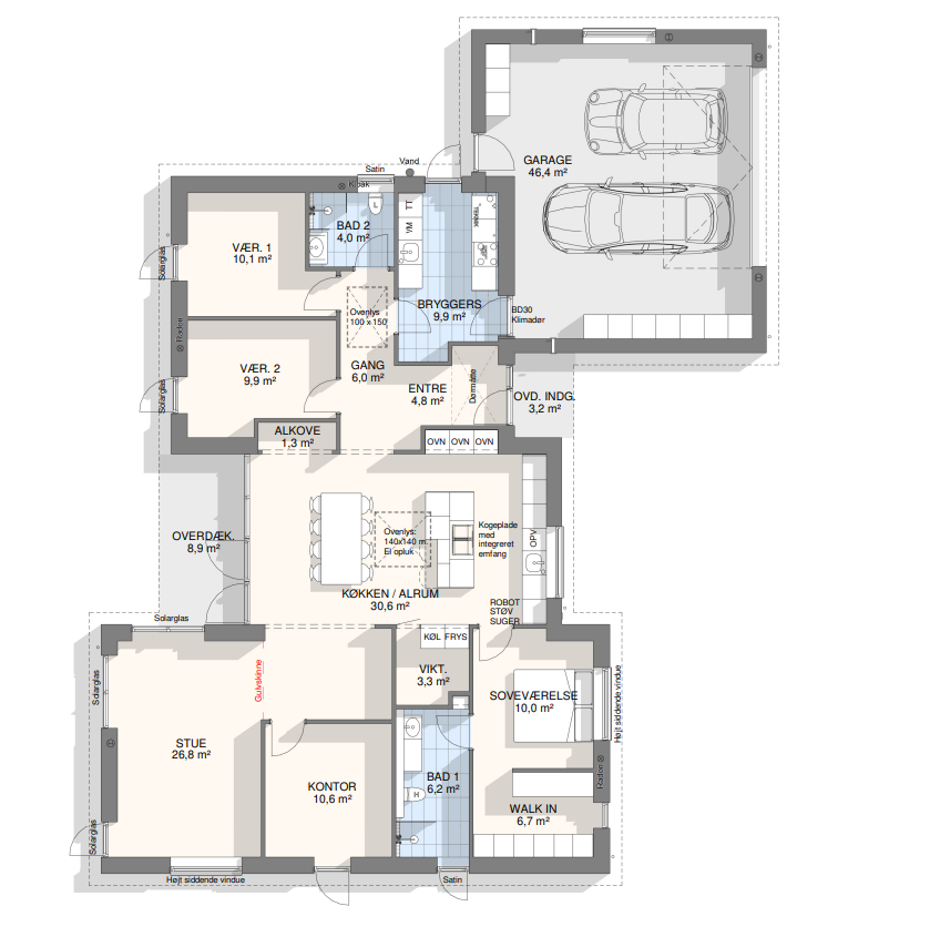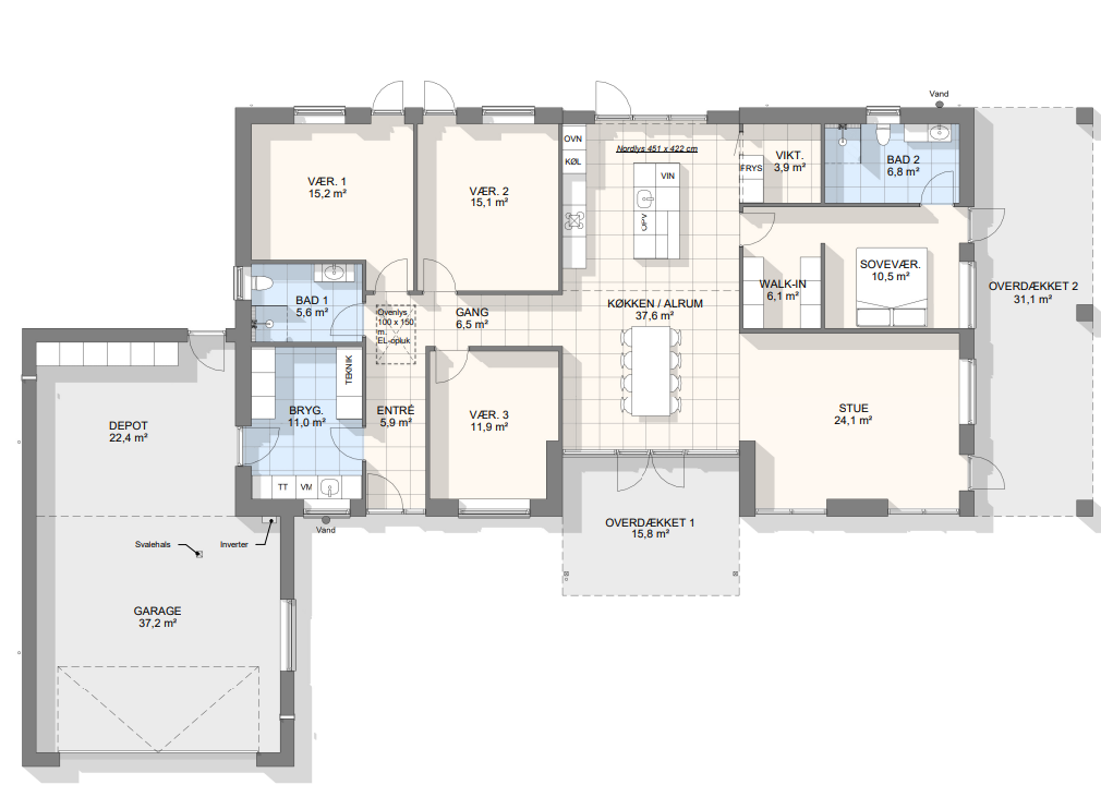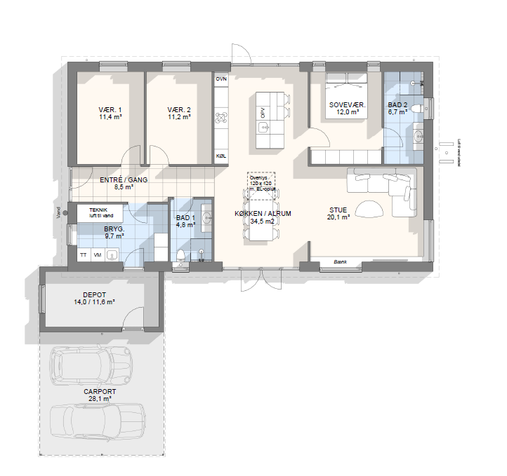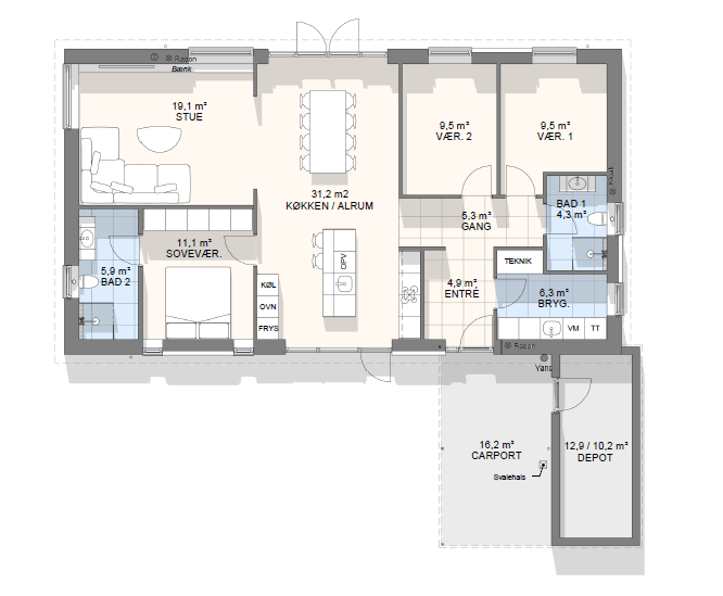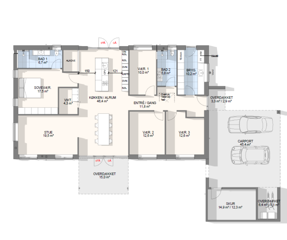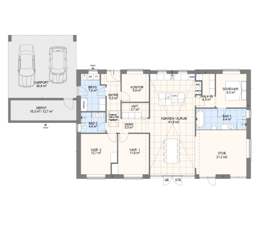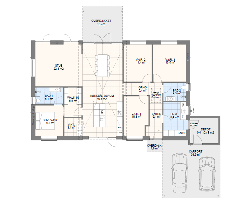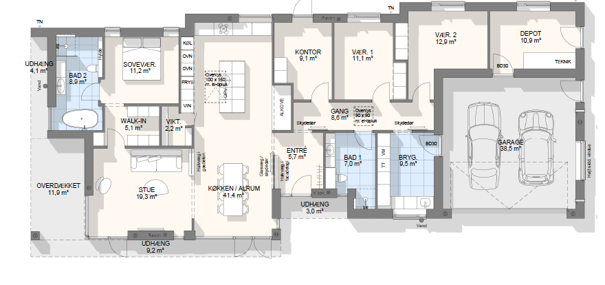Vi har tegnet hundredevis af gennemtænkte planløsninger, der matcher forskellige familier, livsstile og drømme. Brug filtrene herunder til at finde det hus, der passer til jeres behov – uanset om I leder efter walk-in, viktualierum, alkove, garage eller noget helt andet.