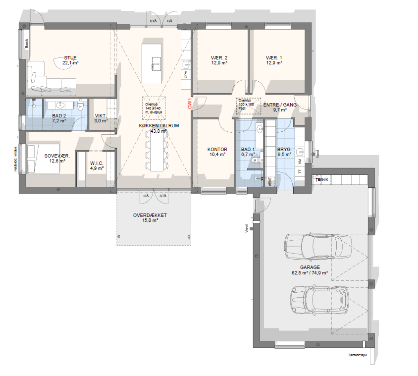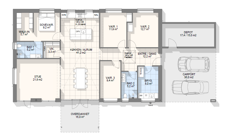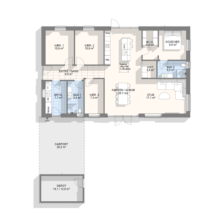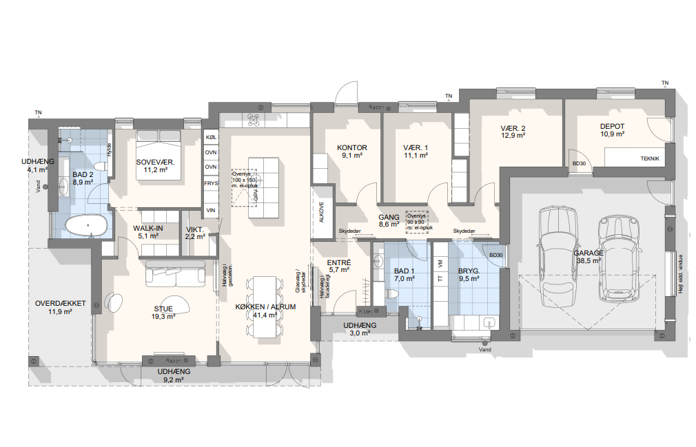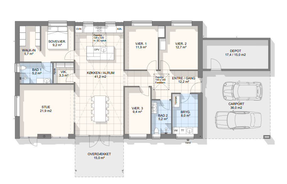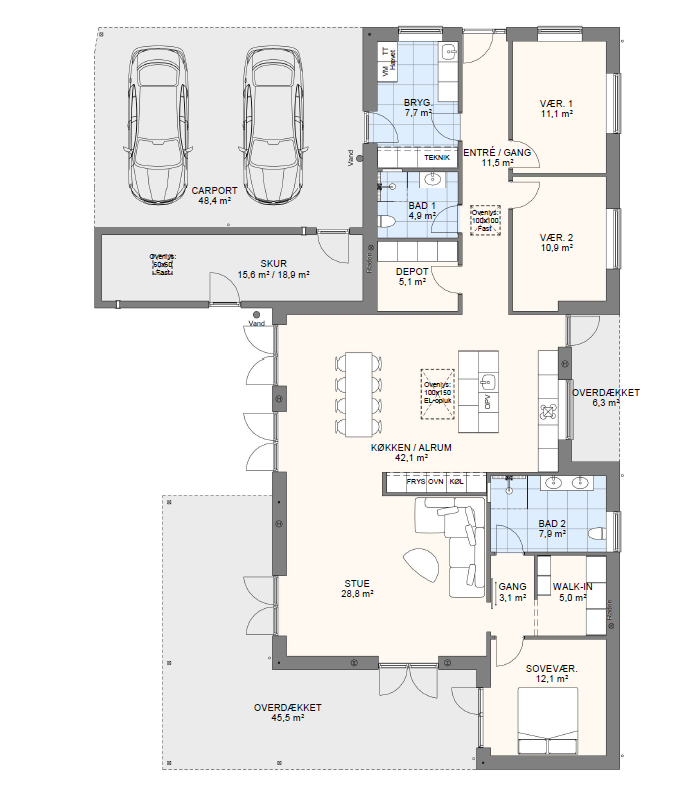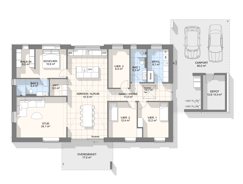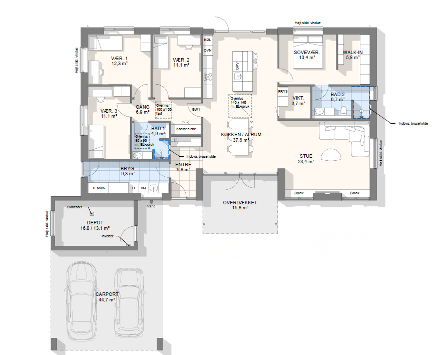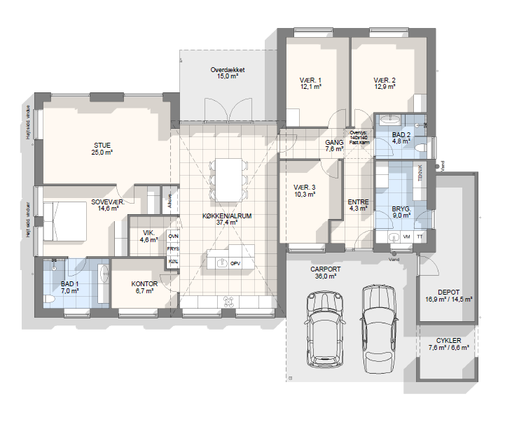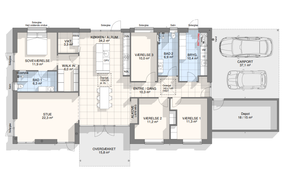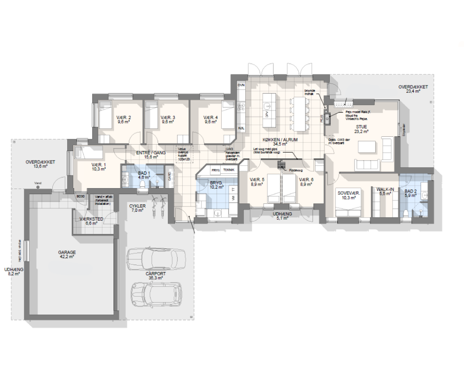 Vi har tegnet hundredevis af gennemtænkte planløsninger, der matcher forskellige familier, livsstile og drømme. Brug filtrene herunder til at finde det hus, der passer til jeres behov – uanset om I leder efter walk-in, viktualierum, alkove, garage eller noget helt andet.
