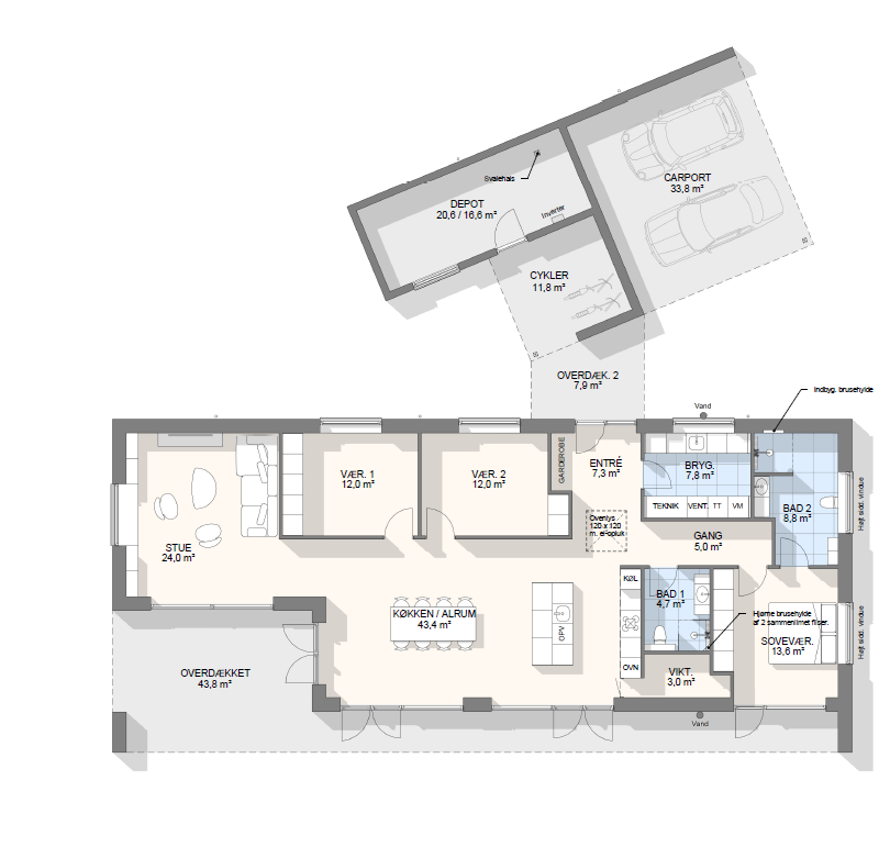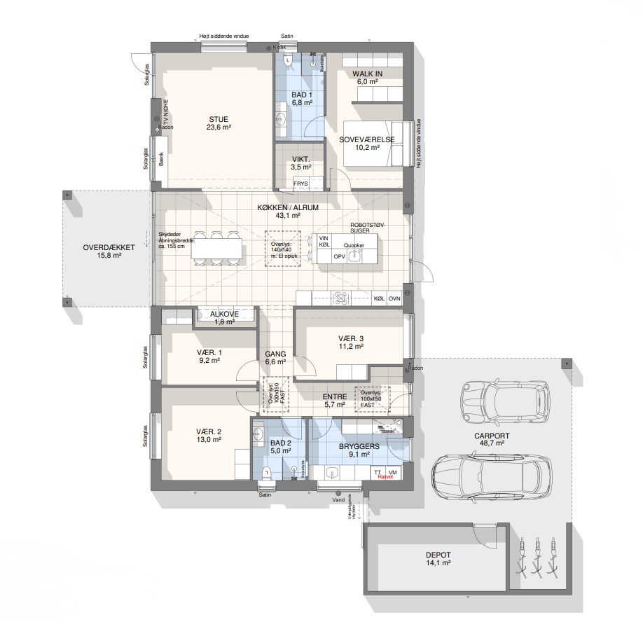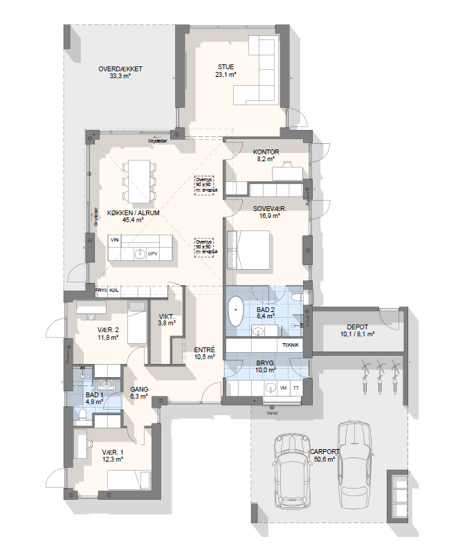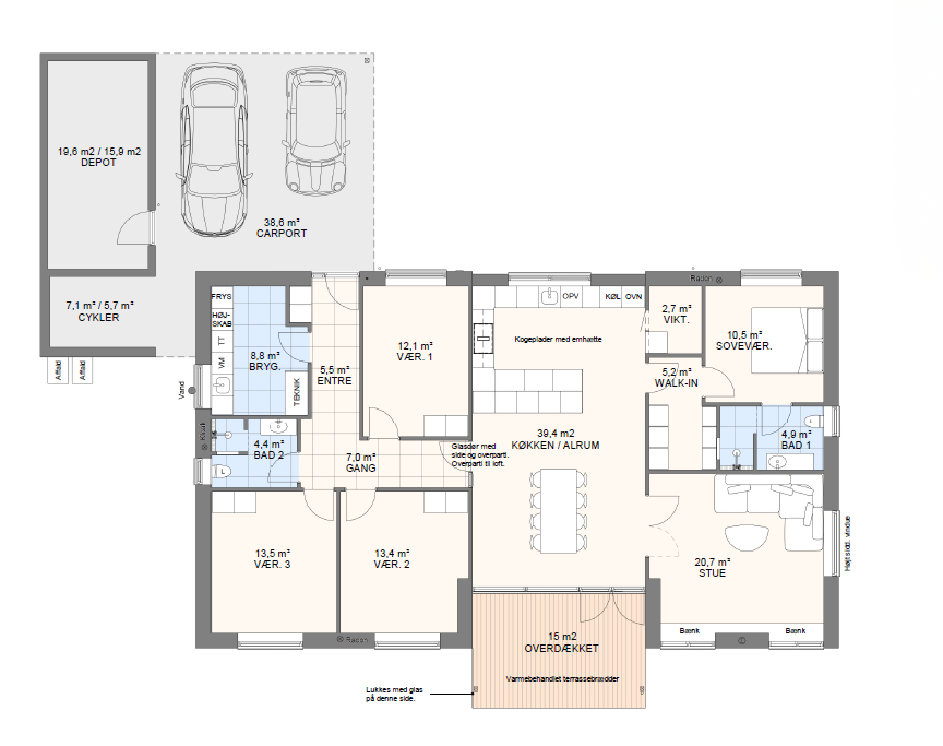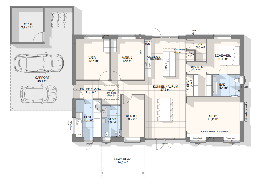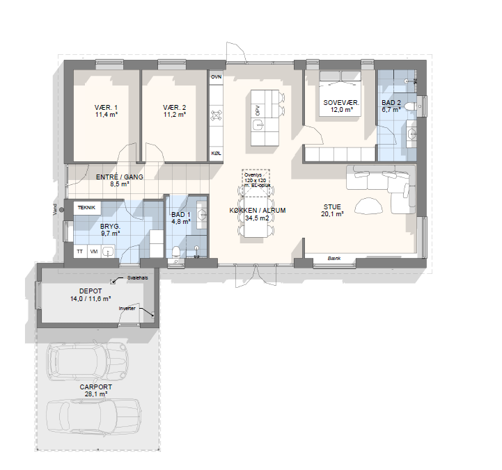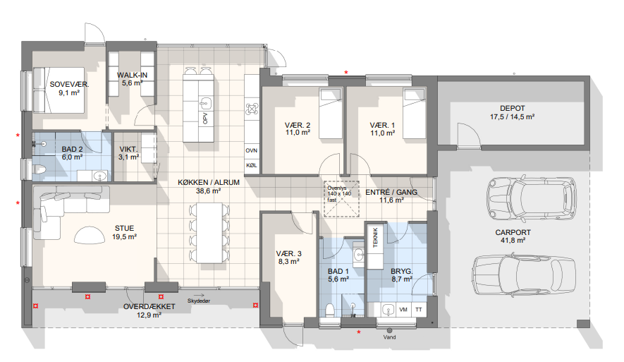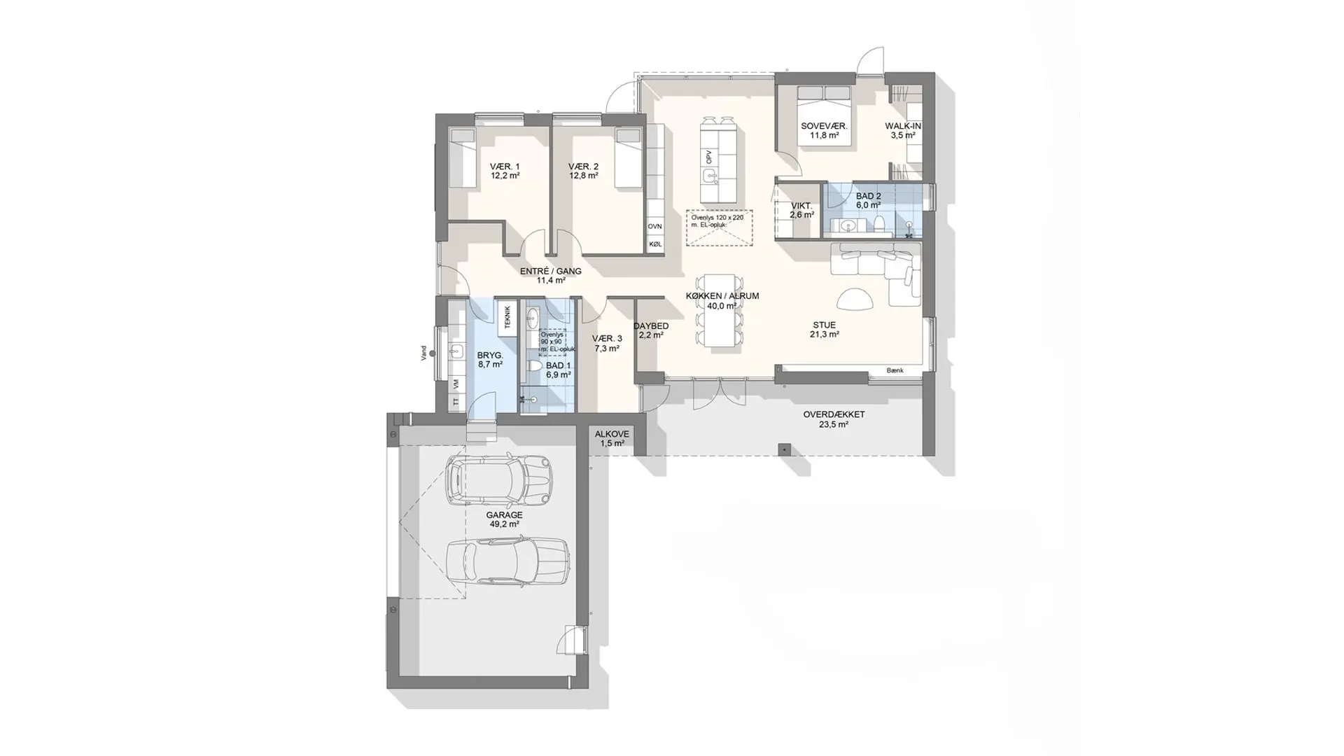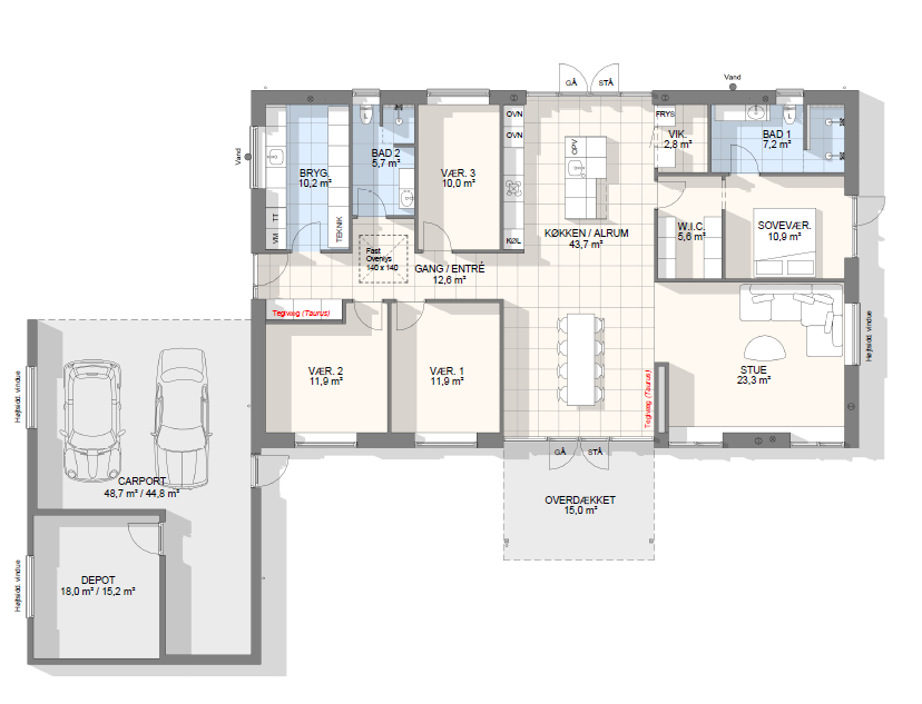 Vi har tegnet hundredevis af gennemtænkte planløsninger, der matcher forskellige familier, livsstile og drømme. Brug filtrene herunder til at finde det hus, der passer til jeres behov – uanset om I leder efter walk-in, viktualierum, alkove, garage eller noget helt andet.