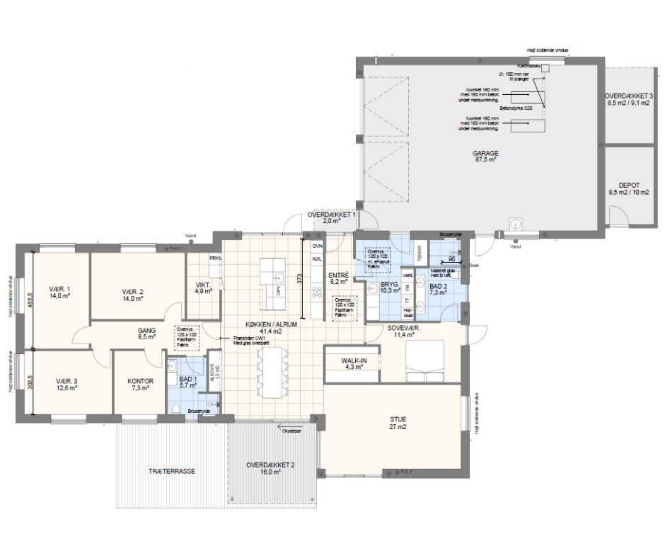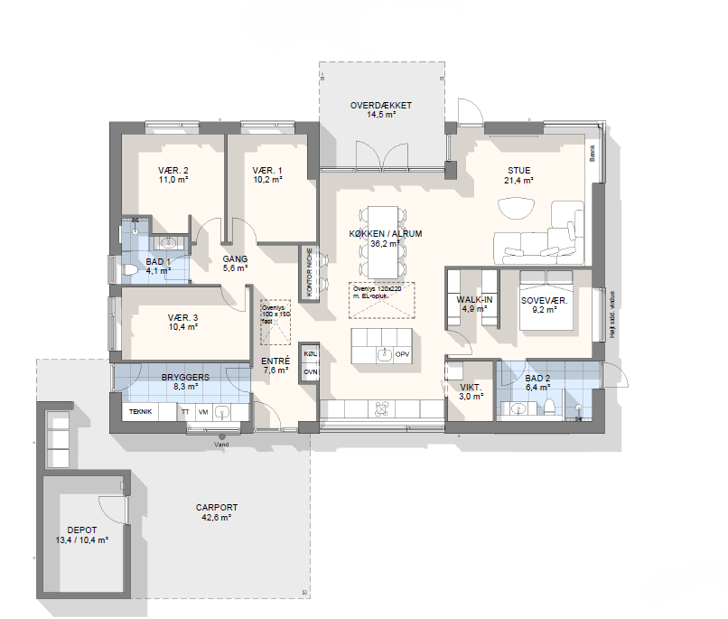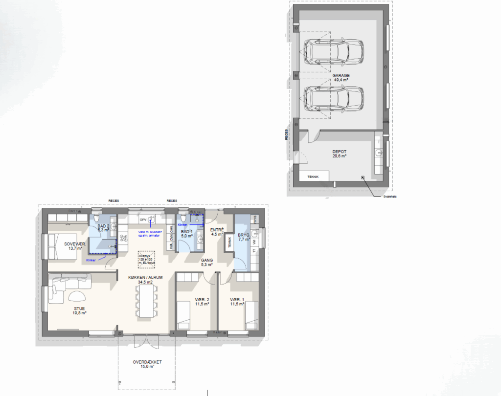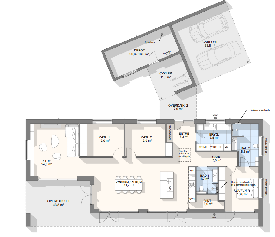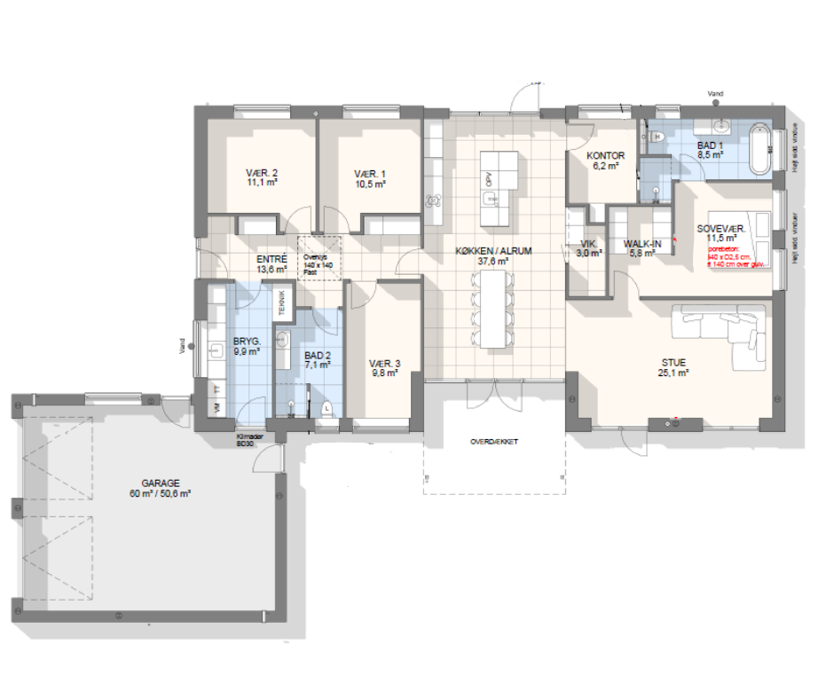 Lad os tage en snak om mulighederne – vi kan tilpasse, spejlvende og justere plantegningen, så den passer præcist til jeres grund og drømme.