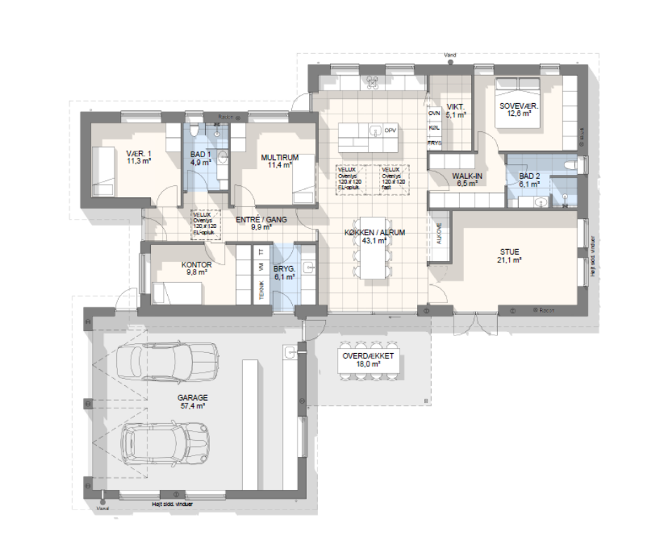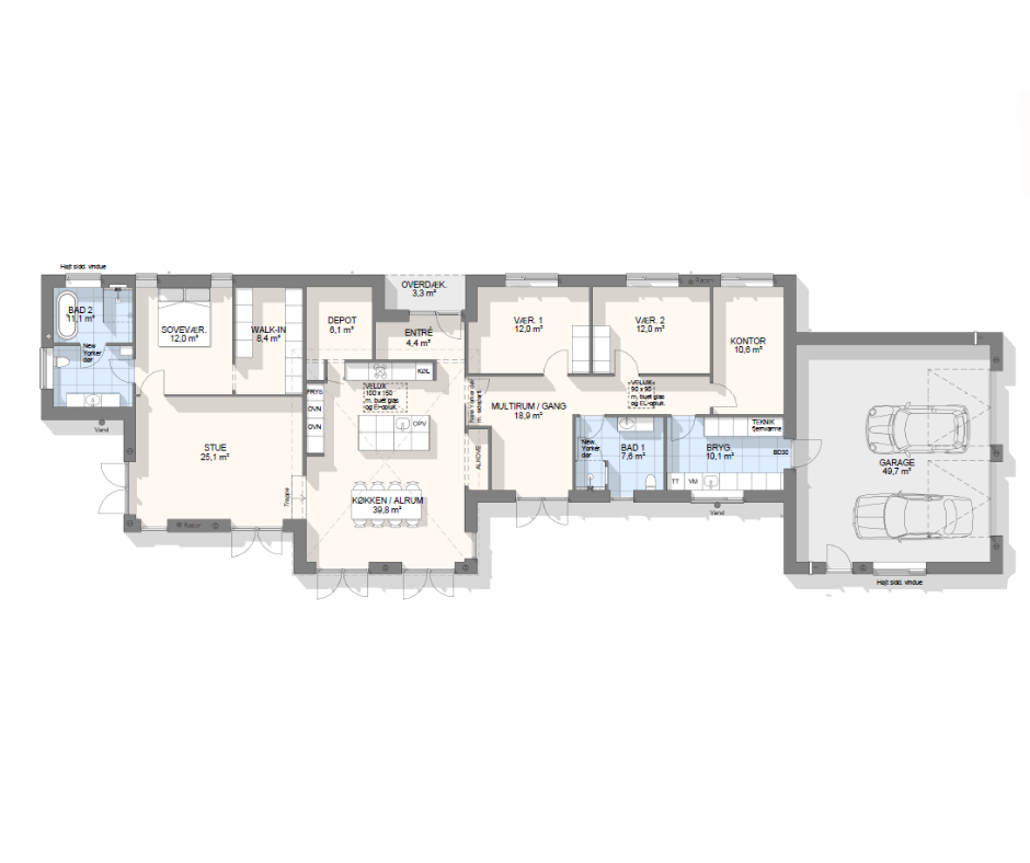 Garage, Multirum, Terrasse, Viktualierum, Walk-in closet