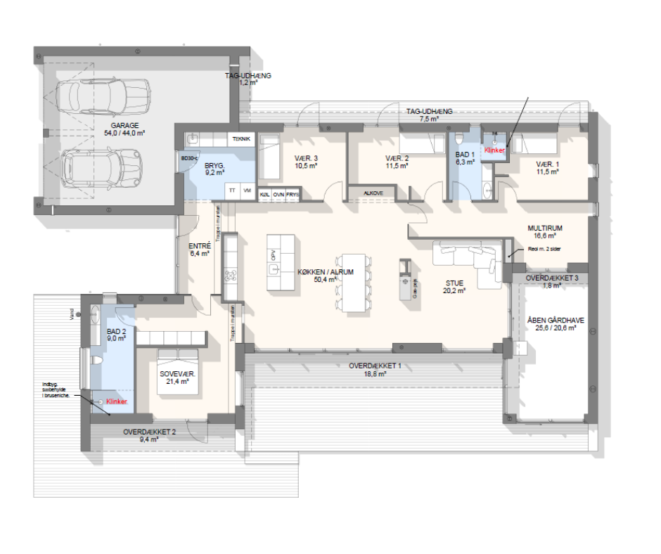 Carport, Depotrum, Multirum, Terrasse, Værksted, Viktualierum