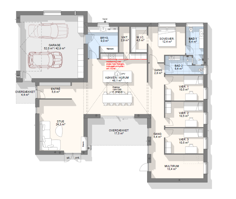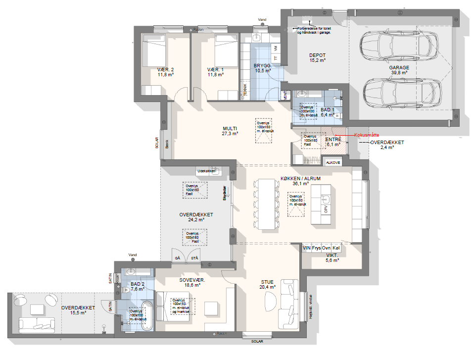 Vi har tegnet hundredevis af gennemtænkte planløsninger, der matcher forskellige familier, livsstile og drømme. Brug filtrene herunder til at finde det hus, der passer til jeres behov – uanset om I leder efter walk-in, viktualierum, alkove, garage eller noget helt andet.