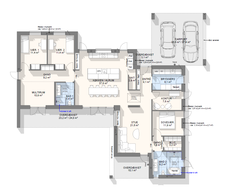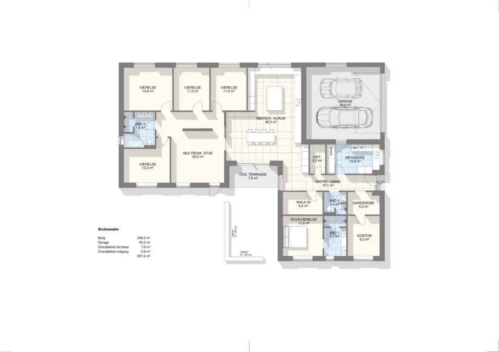 Lad os tage en snak om mulighederne – vi kan tilpasse, spejlvende og justere plantegningen, så den passer præcist til jeres grund og drømme.