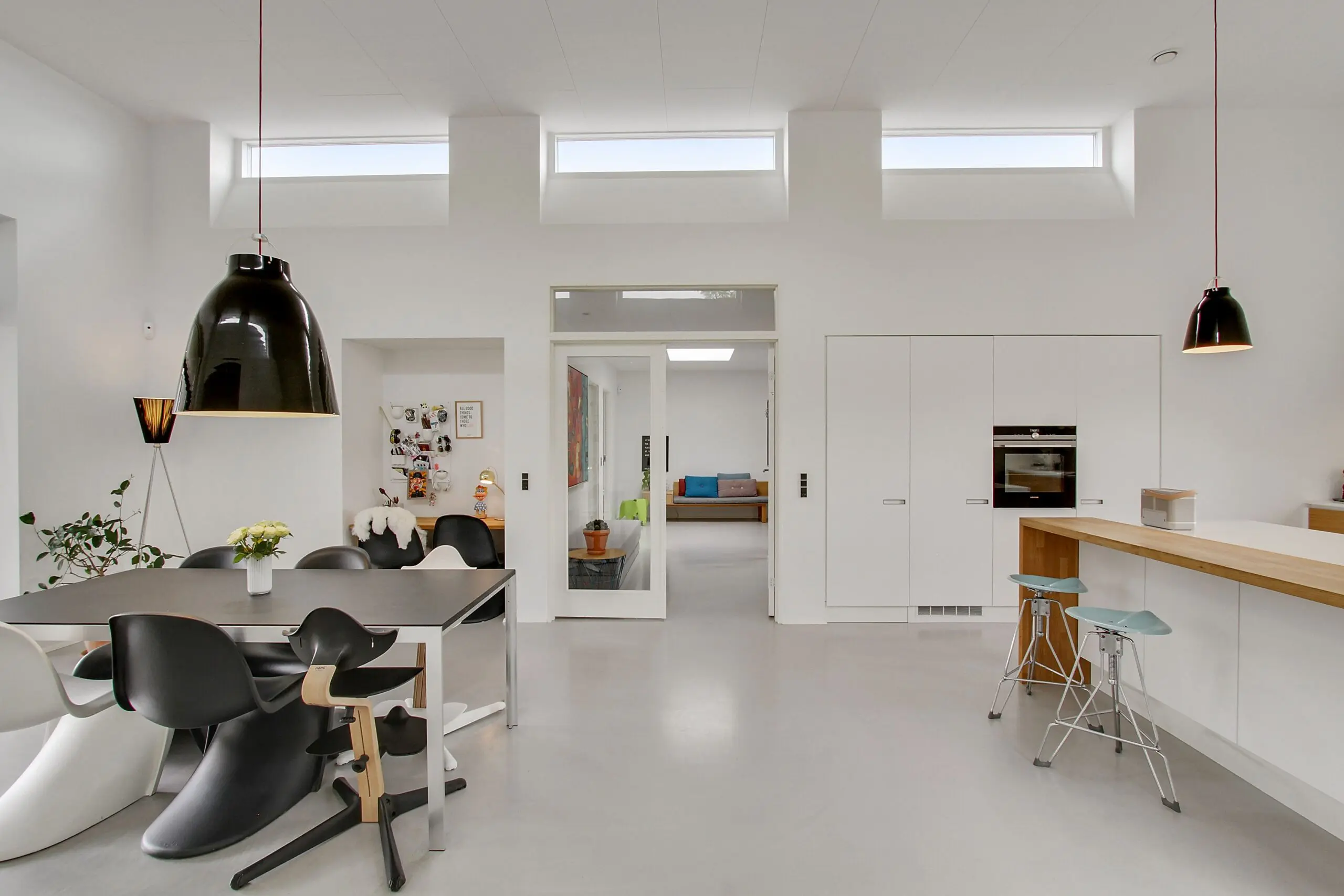Højt til loftet og mulighed for mange kroge og indhak, var noget af det vi gerne ville tage med videre fra vores Københavner lejlighed, men i en ny fortolkning.