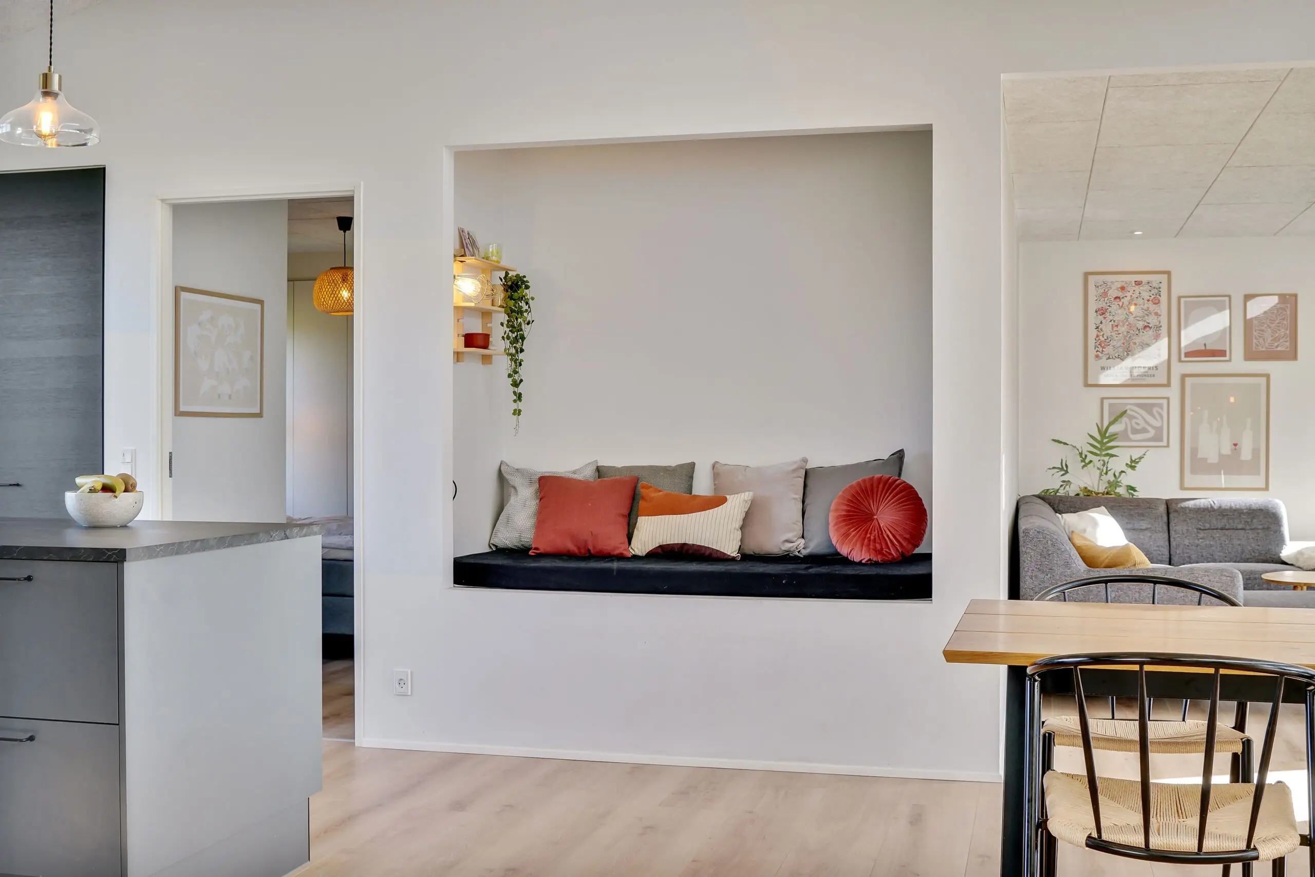 Et eksempel var, at vi kort inden overtagelse (ca. 3 uger før) besluttede os for, at vi ville have en flisevæg i køkkenet. Der sørgede K2 Huset for, at deres murer fik det lavet med kort varsel og til en rimelig pris, hvis vi kunne sørge for fliserne, så det stod klar allerede ved overtagelsen.