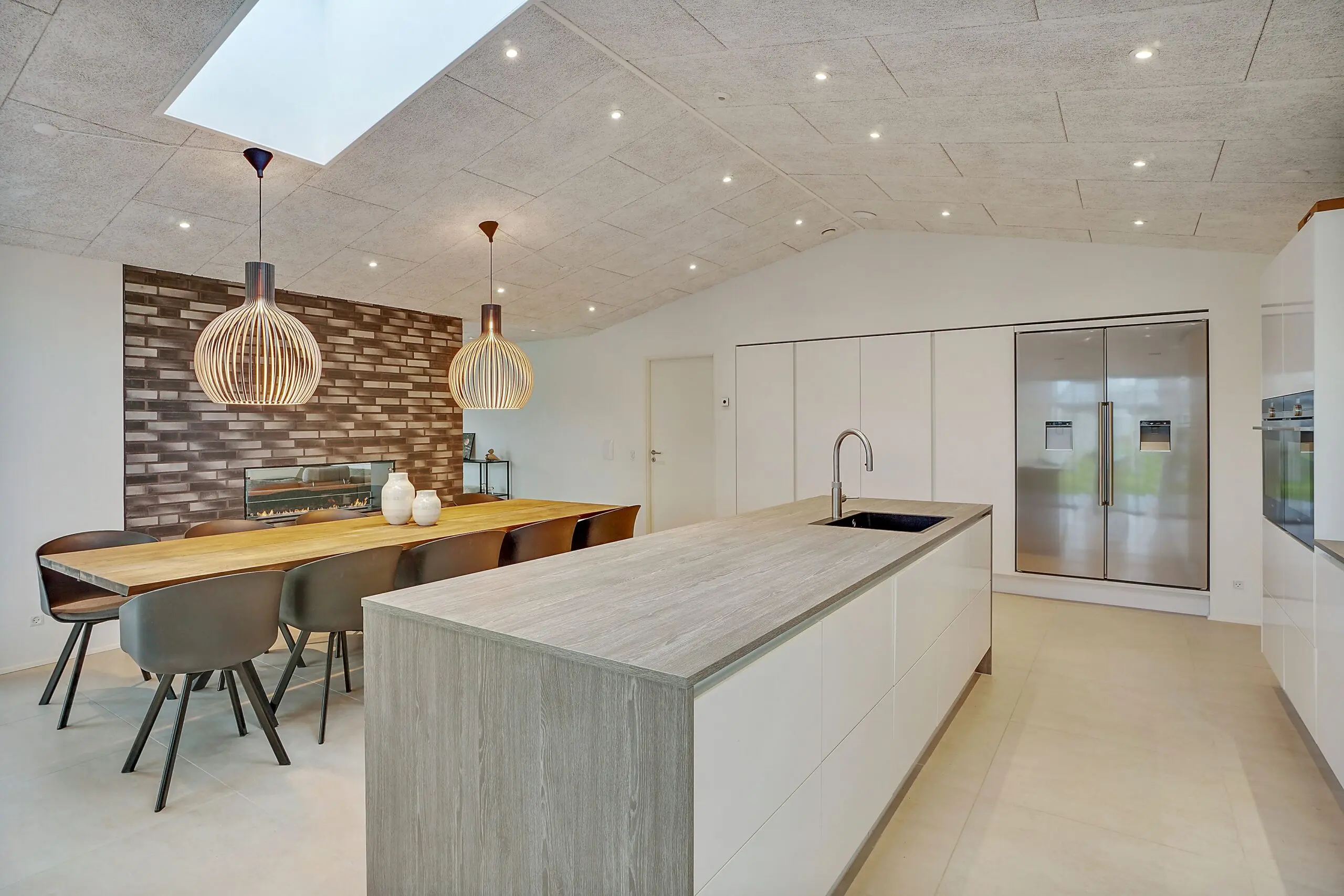 Det rum som betød mest for os var klart vores køkkenalrum, hvor vi kan samle hele familien og samtidig være tilgængelig for vores gæster når der skal laves mad m.m. Samtidig var det vigtigt for os med en stor garage, hvor der både var plads til to biler, værksted og ikke mindst en god fest i ny og næ.