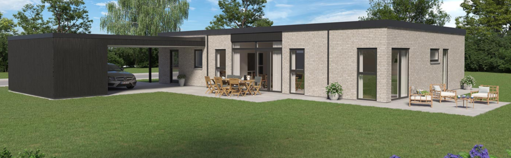 I Herning kan du opleve et af vores populære K2 Living Funkis huse. Her får du et godt indblik i, hvordan vi arbejder med rene linjer, funktionel arkitektur og fleksible plantegninger. Huset viser, hvordan funkisstilen kan kombineres med praktiske løsninger, der fungerer i en travl hverdag.